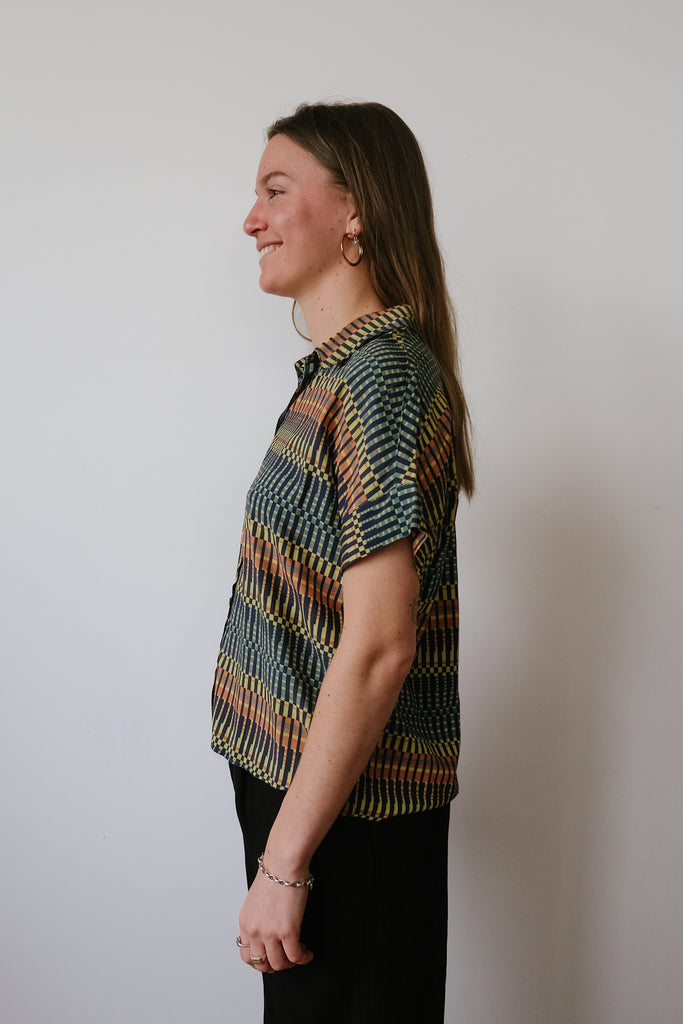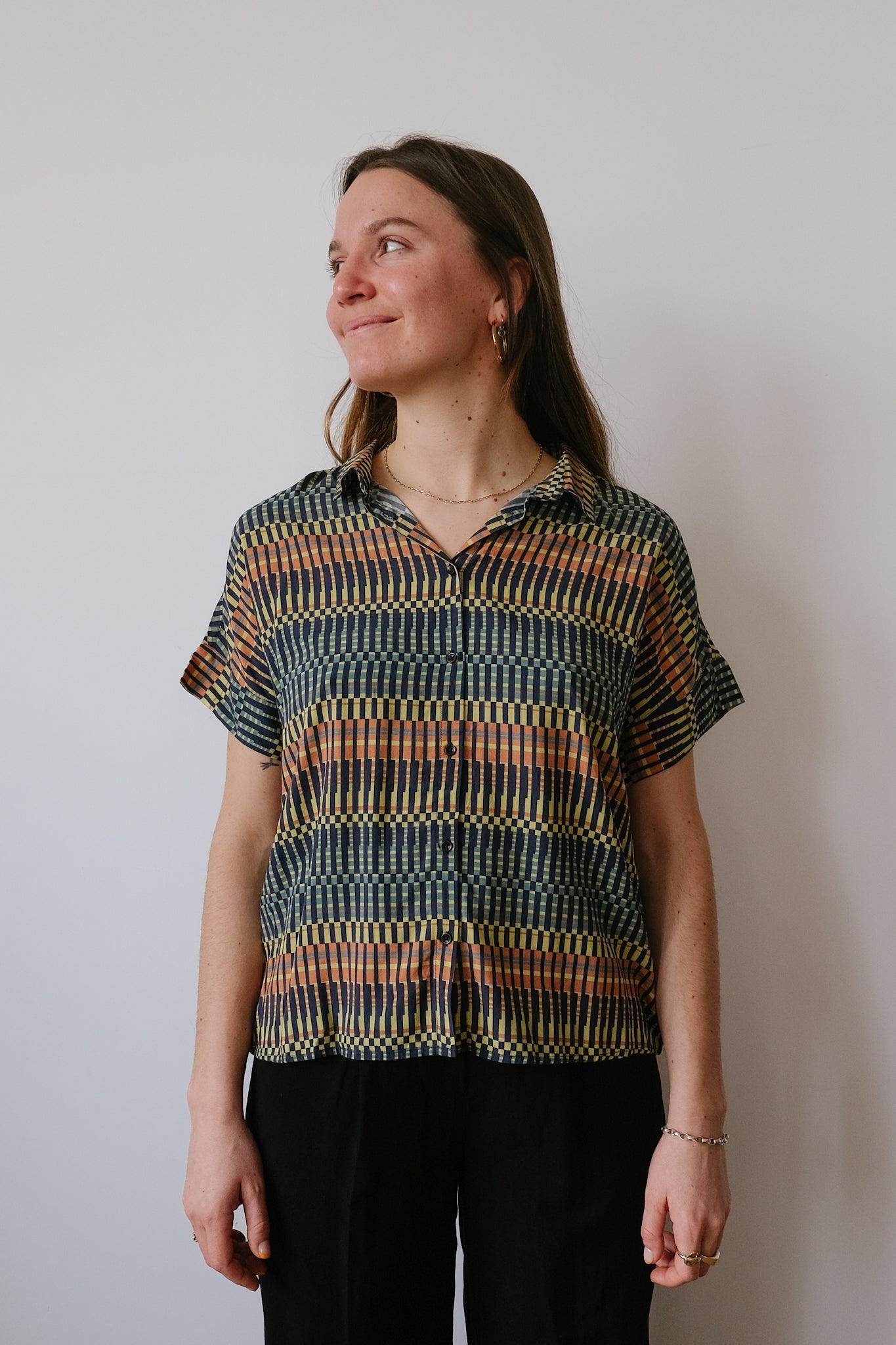 embrace effortless style with this batwing blouse in the playful calella print. the regular fit and batwing sleeves provide a comfortable and flattering look, while the sustainable viscose fabric makes it an ethical choice.