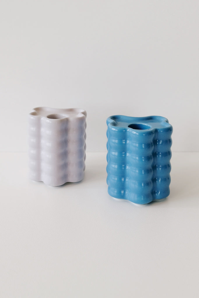 These candle holders are the perfect match for all of our thin candles. Inspired by softly curved silhouettes of flower petals, the flora candle holders are organic, interlocking shapes crafted from hand glazed ceramic.