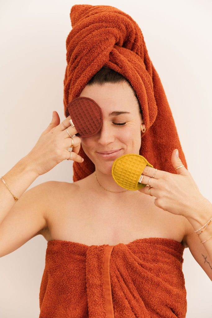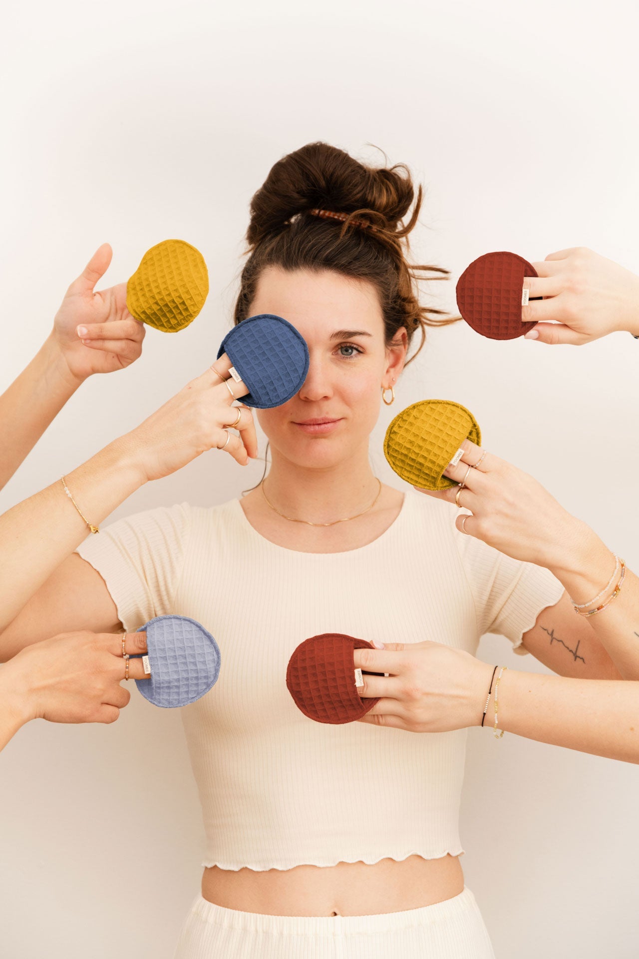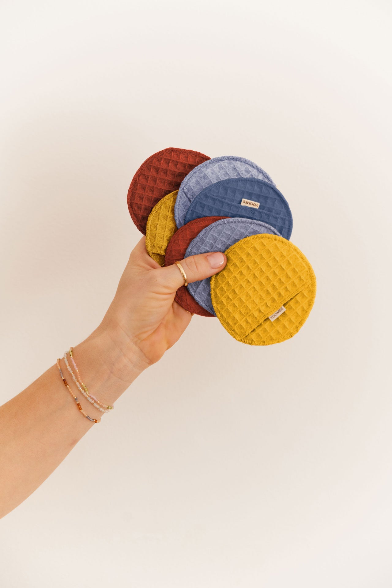 These cleaning pads are made out of soft waffle fabric. This set contains 7 pads, each in a different colour. The convenient opening for your fingers makes daily face cleaning very easy. If you use it with lukewarm water and add soap, it is a very pleasant skin experience. Since it is made of 100% cotton, it is no problem to wash the pads at 60 degrees in the machine.