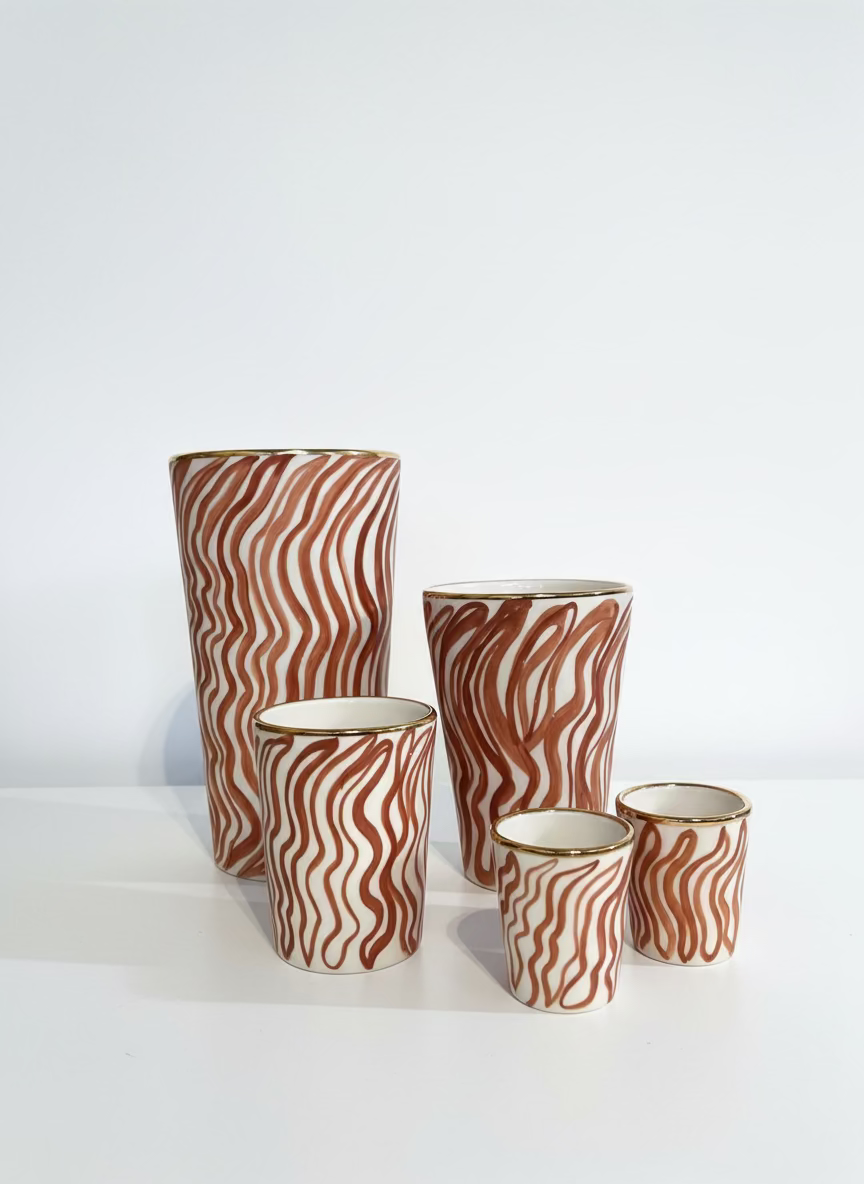 Discover the magic of the Yael Ander's ceramic pieces — handcrafted pieces that celebrate imperfection and artistry. Each vessel is hand-poured and individually painted by Yael with real gold accents, making every piece beautifully unique. From vases to cups, these glazed ceramic treasures work perfectly for fresh flowers or hot and cold beverages. Handle with care: hand wash only and avoid metal utensils to preserve the delicate gold finish. A little love goes a long way—treat them gently, and they'll bring joy to your daily rituals.