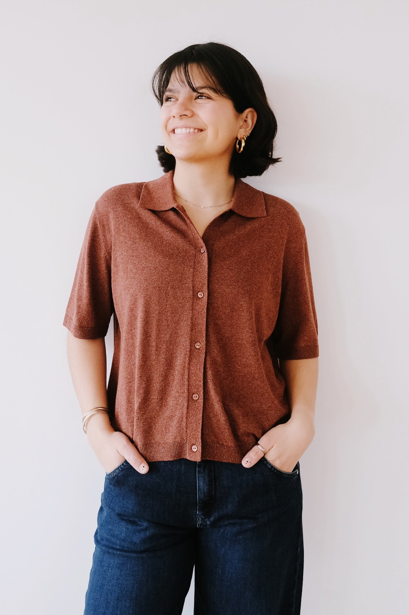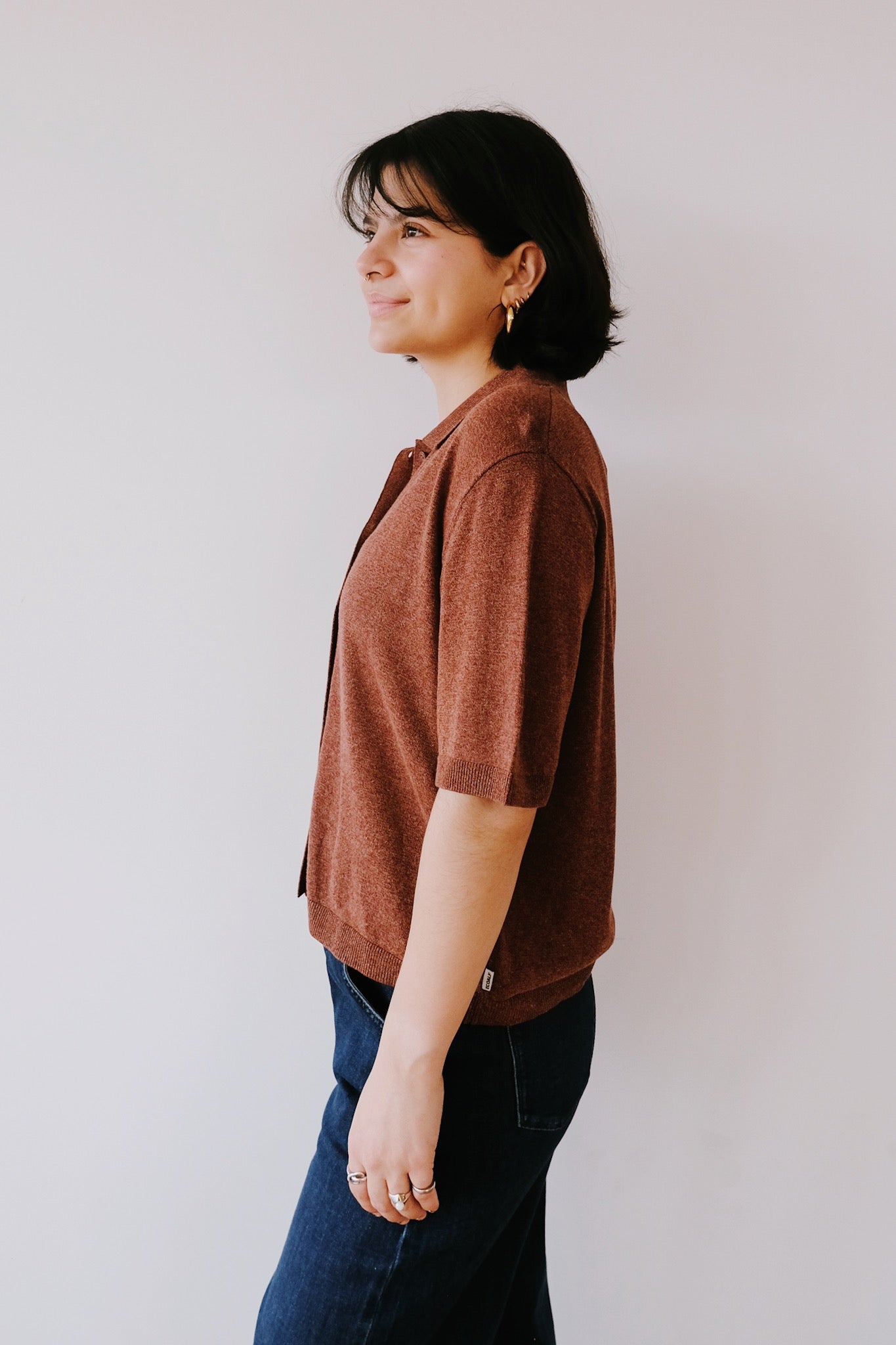 Crafted from a thoughtful blend of LENZING™ ECOVERO™ viscose, recycled cotton, and hemp, this lightweight knit shirt strikes the perfect balance between comfort and conscience. Featuring a gently cropped silhouette, it's designed to layer effortlessly or stand alone. The soft, breathable fabric moves with you, while the sustainable fiber mix means you're wearing a choice that feels as good as it looks.