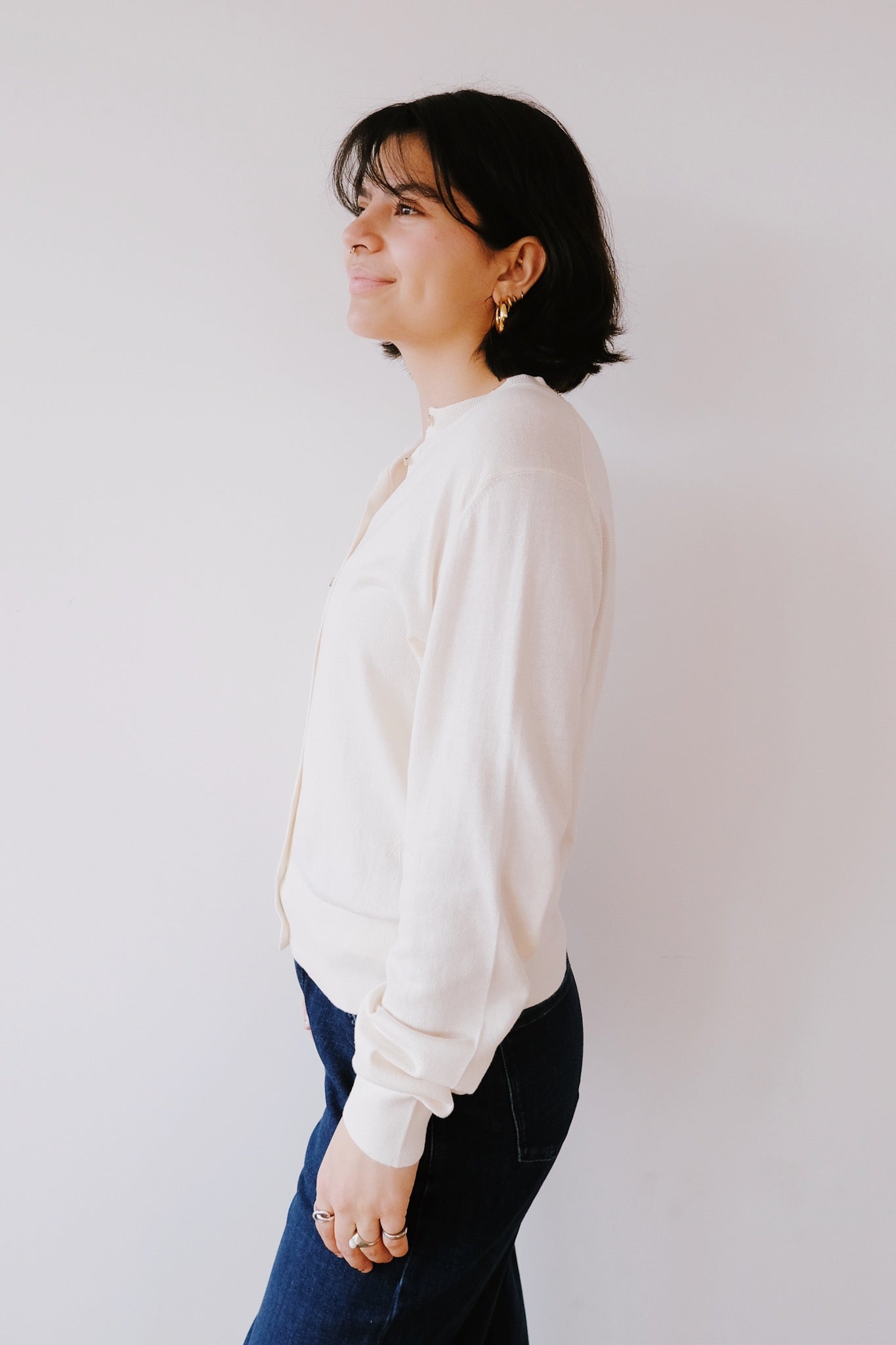 Get cozy with this cardigan in oatmilk! This soft, slim-fit cardigan brings playful charm to your everyday look. Crafted from organic cotton and Modal (TENCEL™) it’s gentle on your skin and the planet. The button panel lets you style it your way, perfect for any casual outing or cozy evening in. We love it!