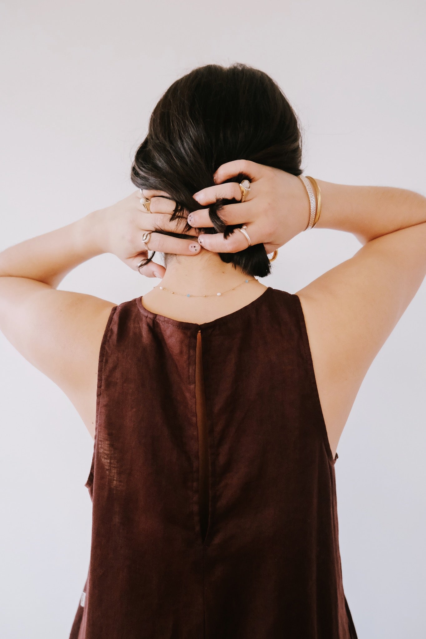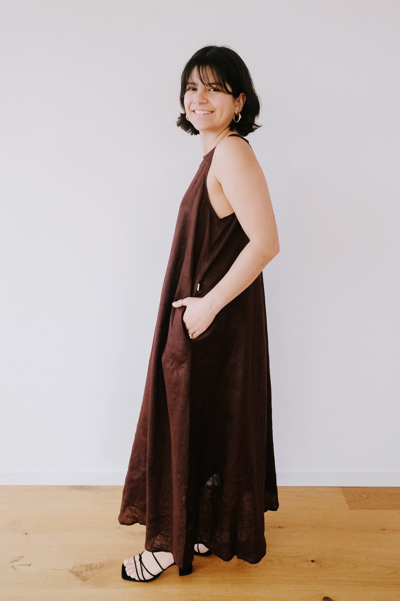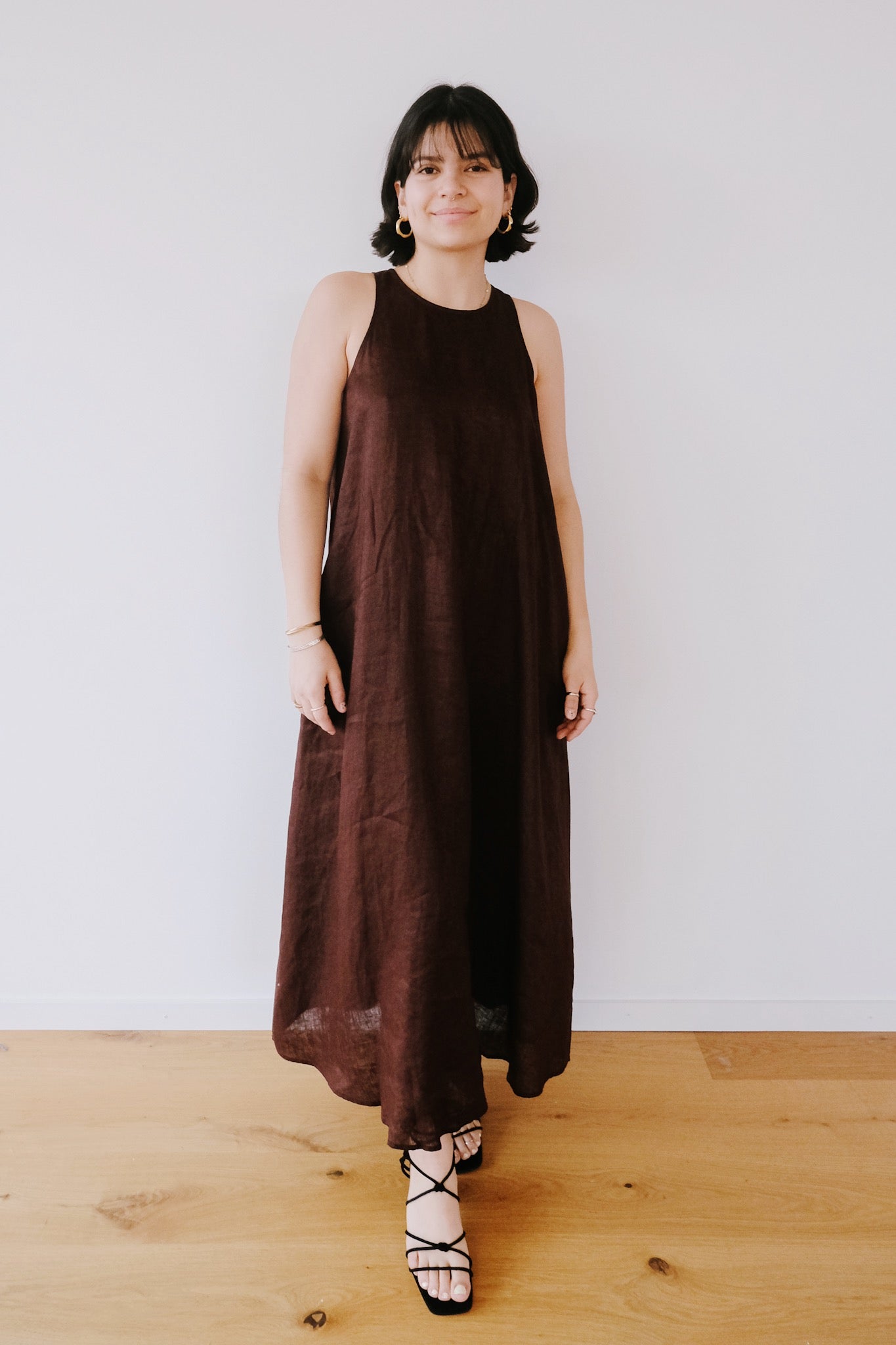 Effortless summer style meets sustainable craftsmanship in this cocoa-hued linen dress. Woven from 80% premium linen and 20% recycled linen, it's breathable enough for warm days and thoughtfully made to minimize environmental impact. The rich, versatile brown tone pairs seamlessly with everything in your wardrobe—throw it on with sandals for a casual outing or dress it up for an evening out. Light, flowing, and endlessly wearable, this is the dress you'll reach for again and again.