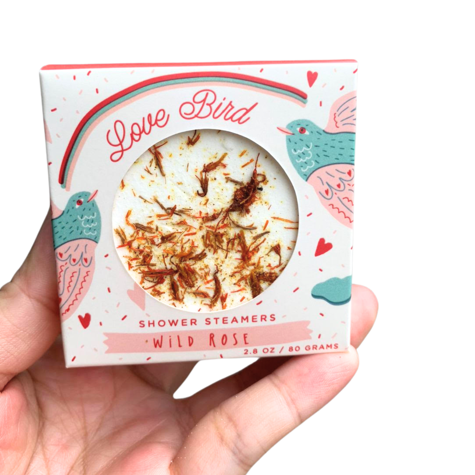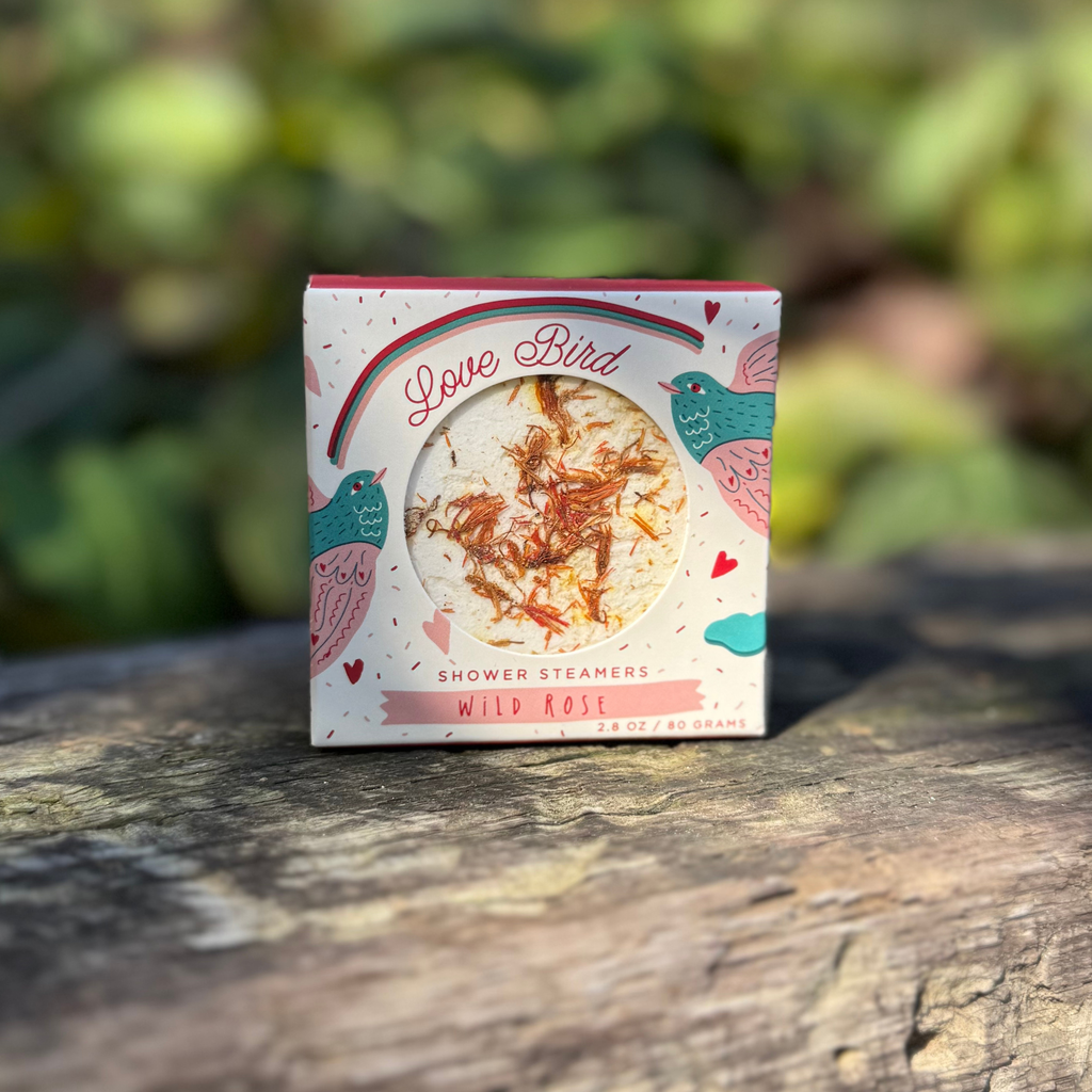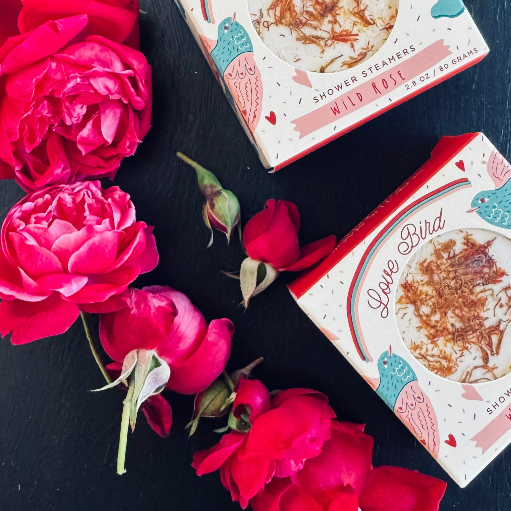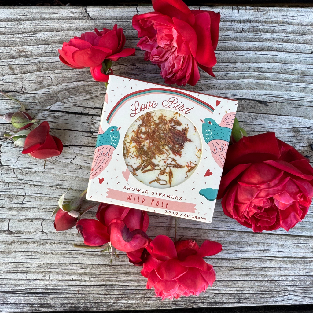 Bring loving energy and take a moment to stop and smell the roses. This Wild Rose Shower Steamer Duo infuses your shower with the soft romantic scent of blooming roses to open the heart and invite calm connection. Activated by water, each steamer releases aromatherapeutic essential oils that nurture emotional balance and self-love. Perfect for moments when you need grounding, compassion or a reminder of beauty in simplicity. Each box contains two shower steamers.