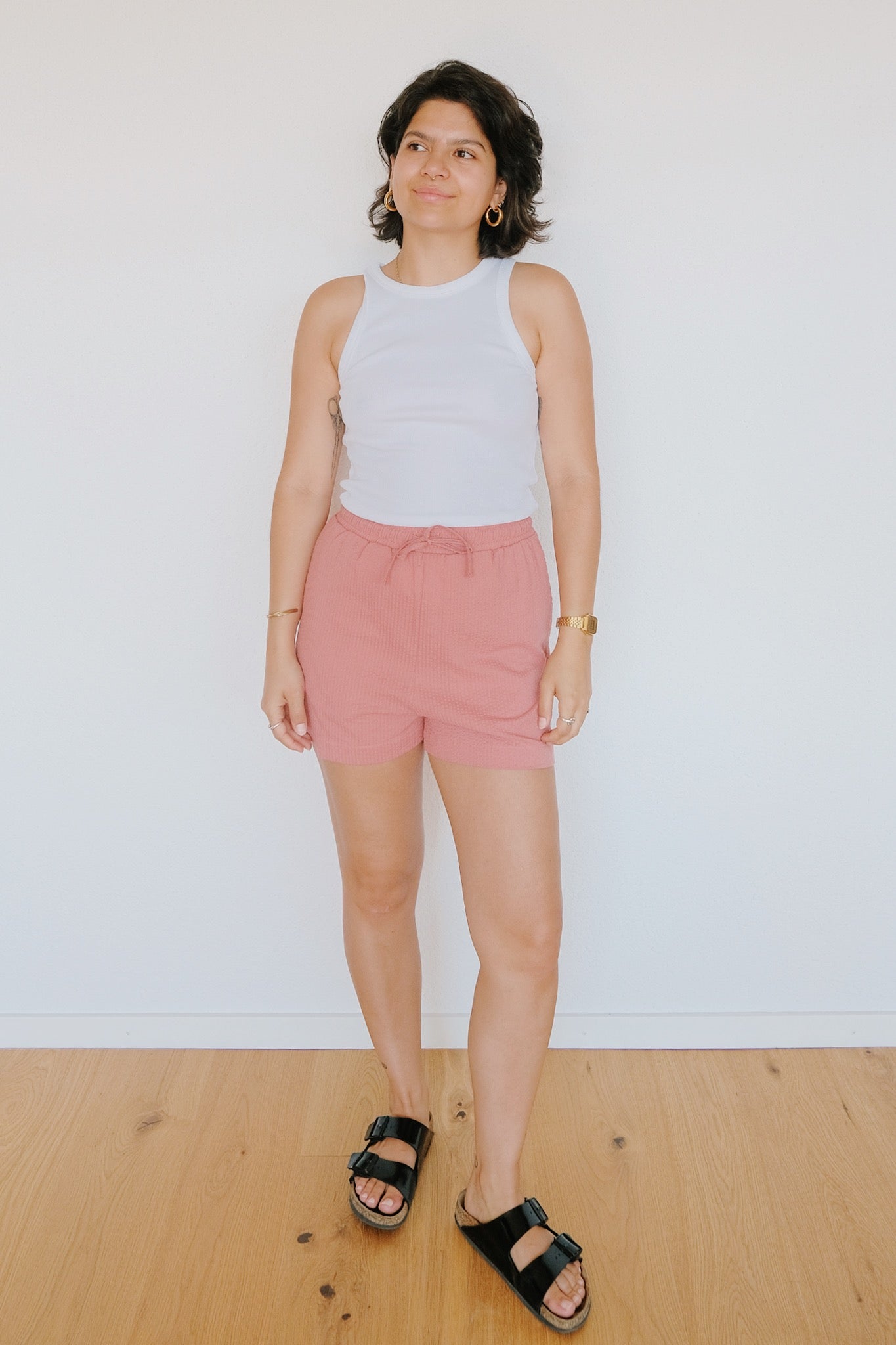 The Samira Shorts are perfect for lounging, sleeping, or your effortless everyday wear. Crafted from 100% organic cotton, they feature a relaxed fit, an elasticated waistband, and subtle side pockets. Ideal as women's pyjama shorts or sustainable loungewear.