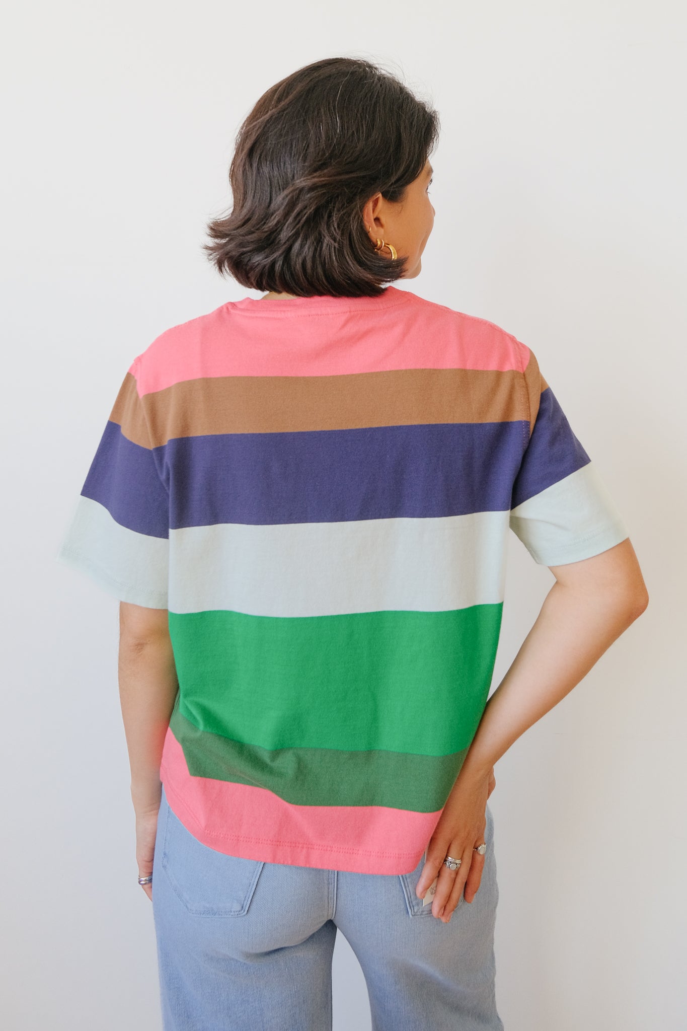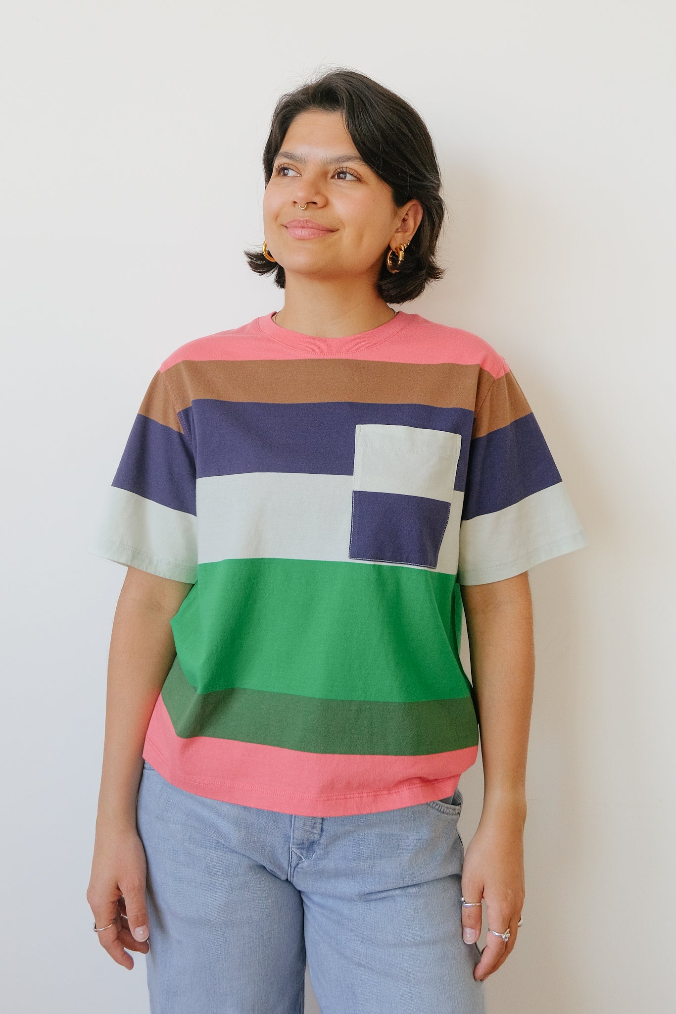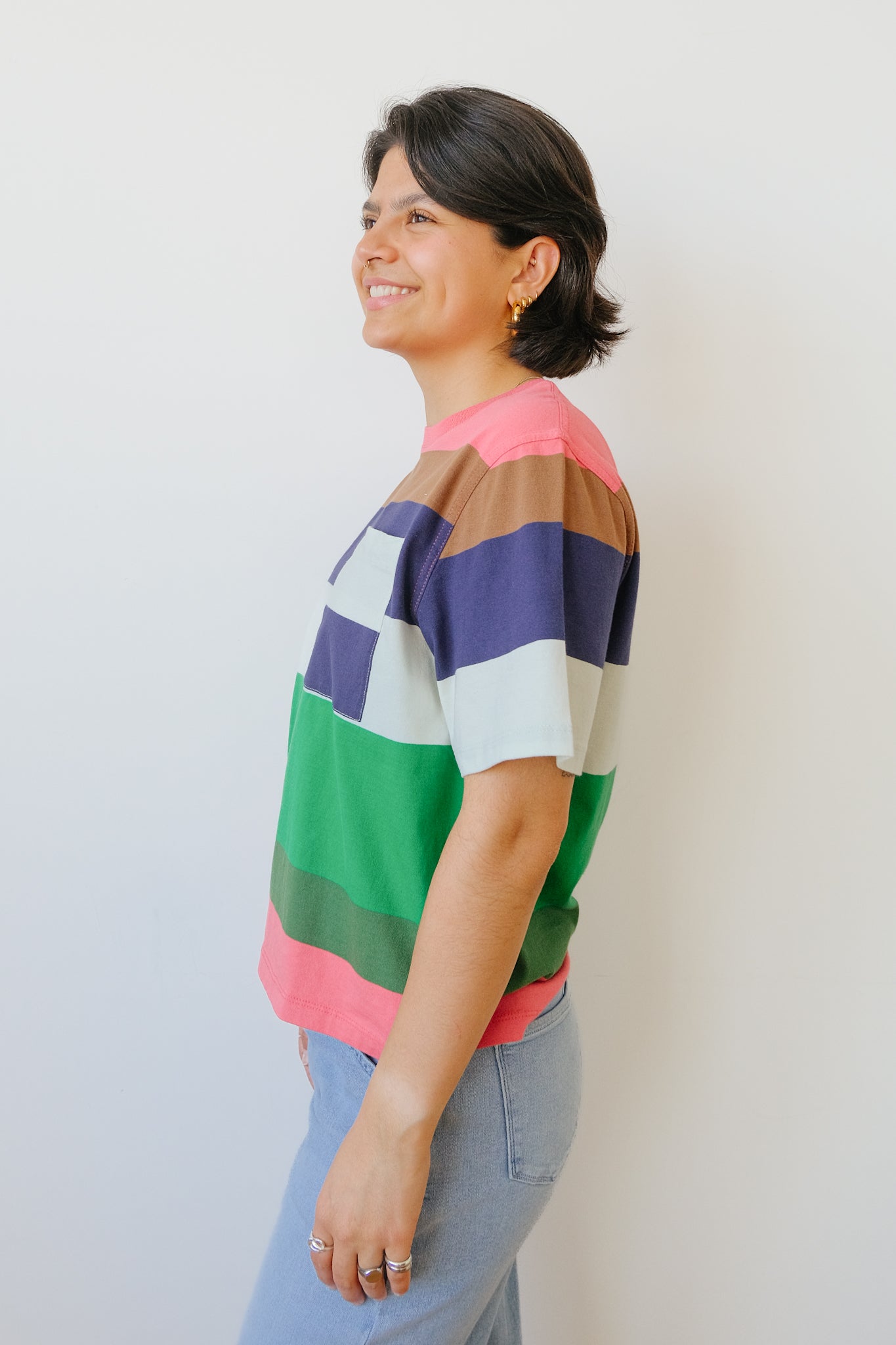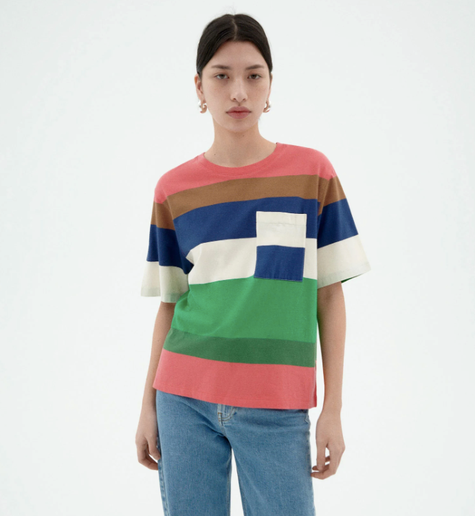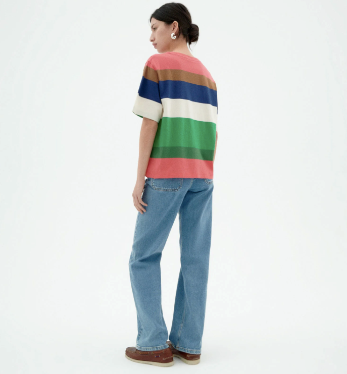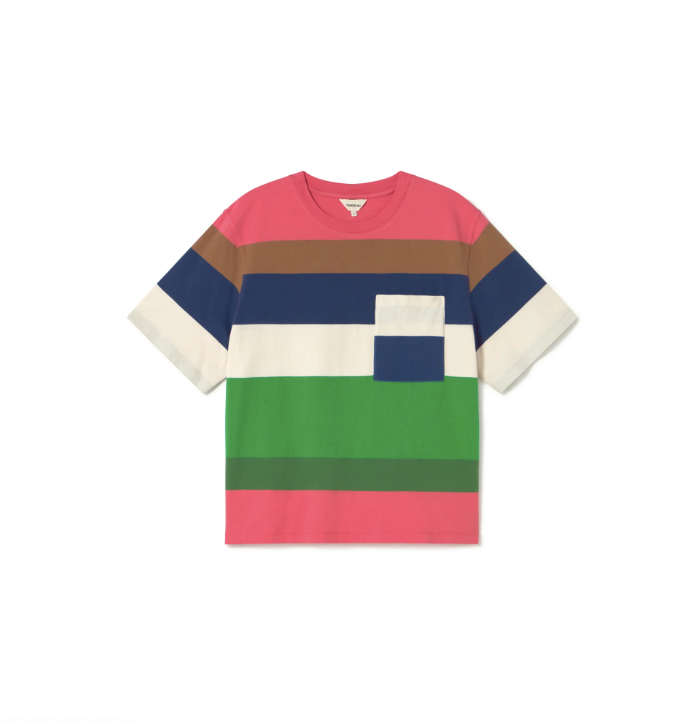 go bold and bright with this super fun t-shirt! made from certified organic GOTS cotton for a comfortable and eco-friendly choice. the loose fit provides ultimate comfort for any adventure.