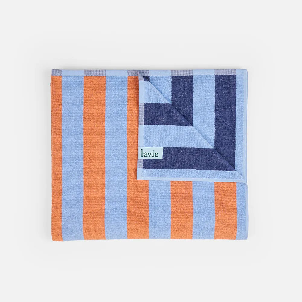 Two sides, one statement: Pepa delivers double the color fun at the beach, pool, or bathroom. With different vibrant block stripe designs on the front and back, this towel feels fresh and nostalgic at the same time. Measuring a generous 100 x 180 cm and made from 100% organic cotton, Pepa brings as much summer joy as a handful of sand between your toes!