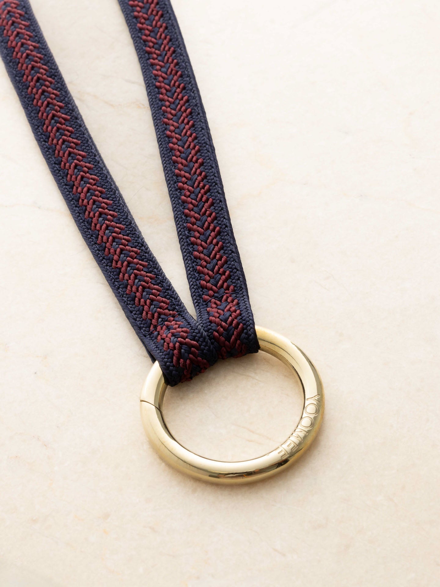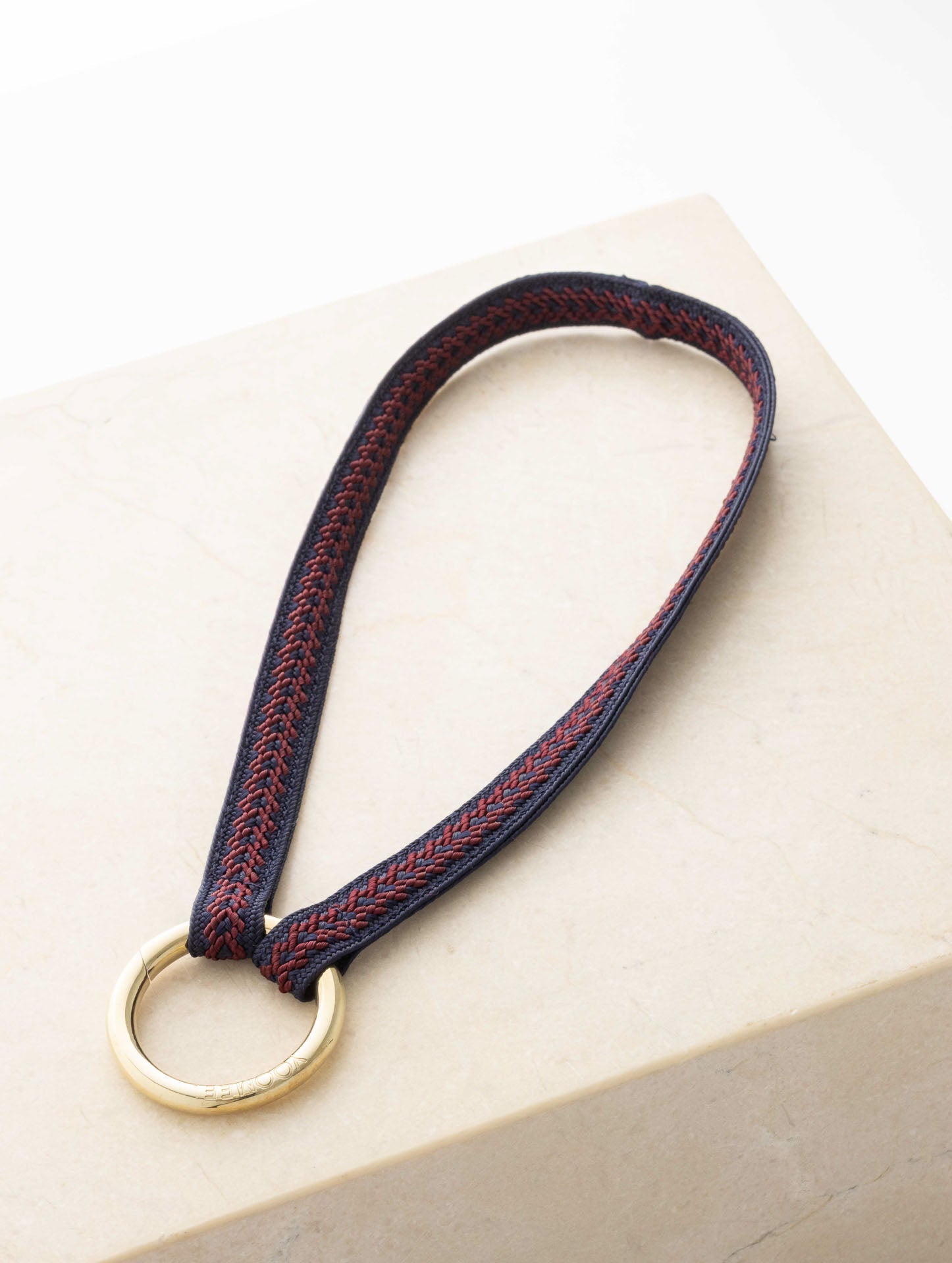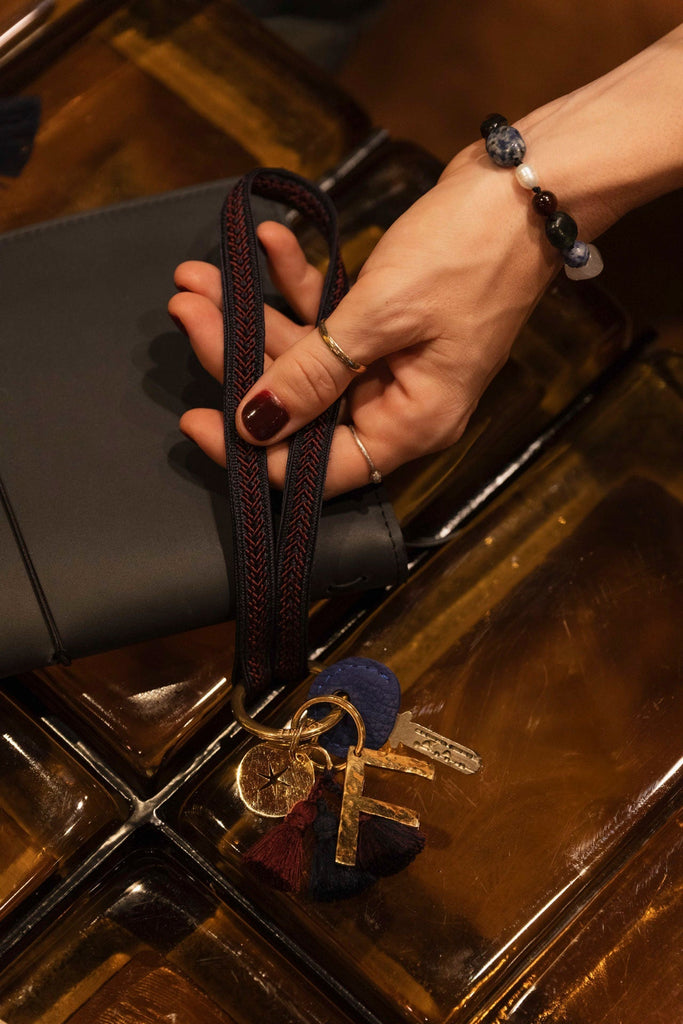 this keychain is made out of moroccan ribbons called sfifa. originally they are used for decorating traditional caftans. developing from ‘sabra’ to ‘sfifa’ the threads are transformed step by step into keychains. they are braided into ribbons on the outskirts of marrakech using an antique machine.