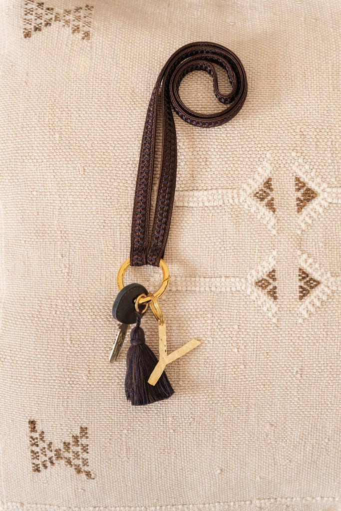 this keychain is made out of moroccan ribbons called sfifa. originally they are used for decorating traditional caftans. developing from ‘sabra’ to ‘sfifa’ the threads are transformed step by step into keychains. they are braided into ribbons on the outskirts of marrakech using an antique machine.