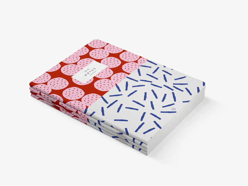 capture your thoughts and plans in style with this fun notebook with pink, red and blue. made with a flexible binding and sturdy natural paper cover, it features blank cream-colored pages for endless possibilities. plus, it's climate neutral!