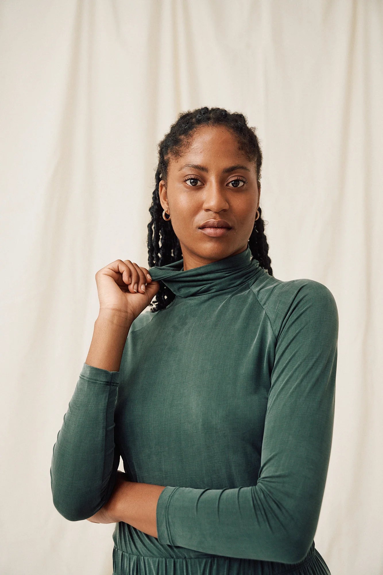 Introducing the must-have essential for your wardrobe, the cupro tube neck. This modern rollneck top is perfect for understated yet expressive style. The cupro fabric is not only soft and luxurious on your skin, but also ideal for layering in colder weather without pilling.