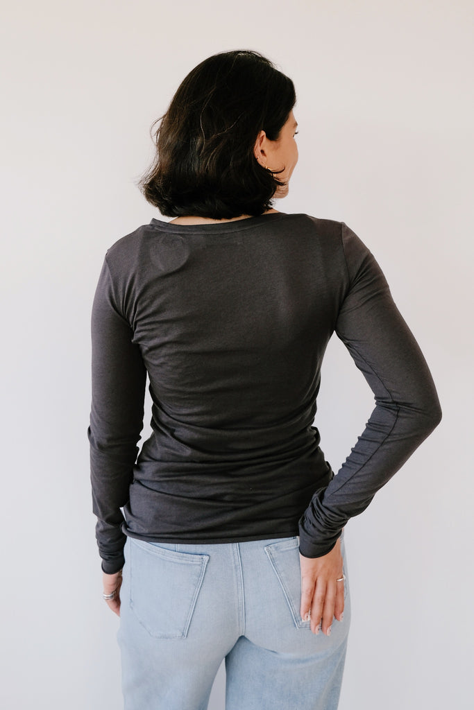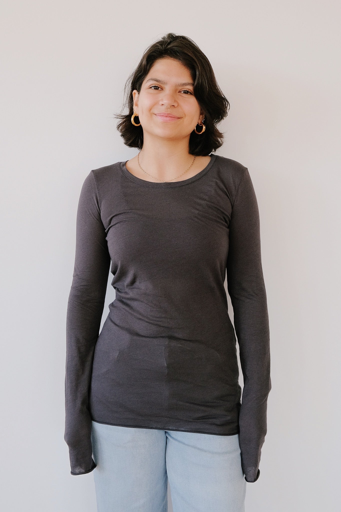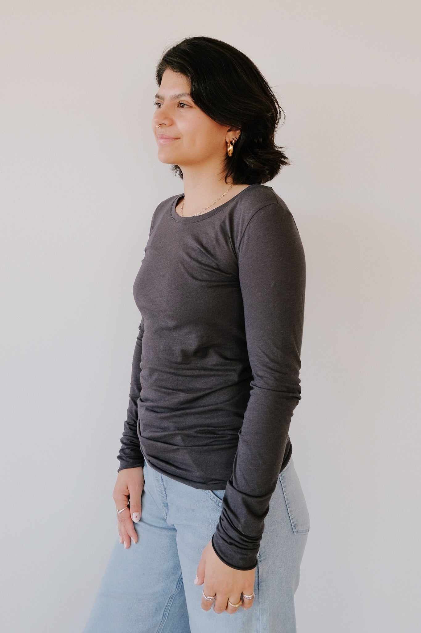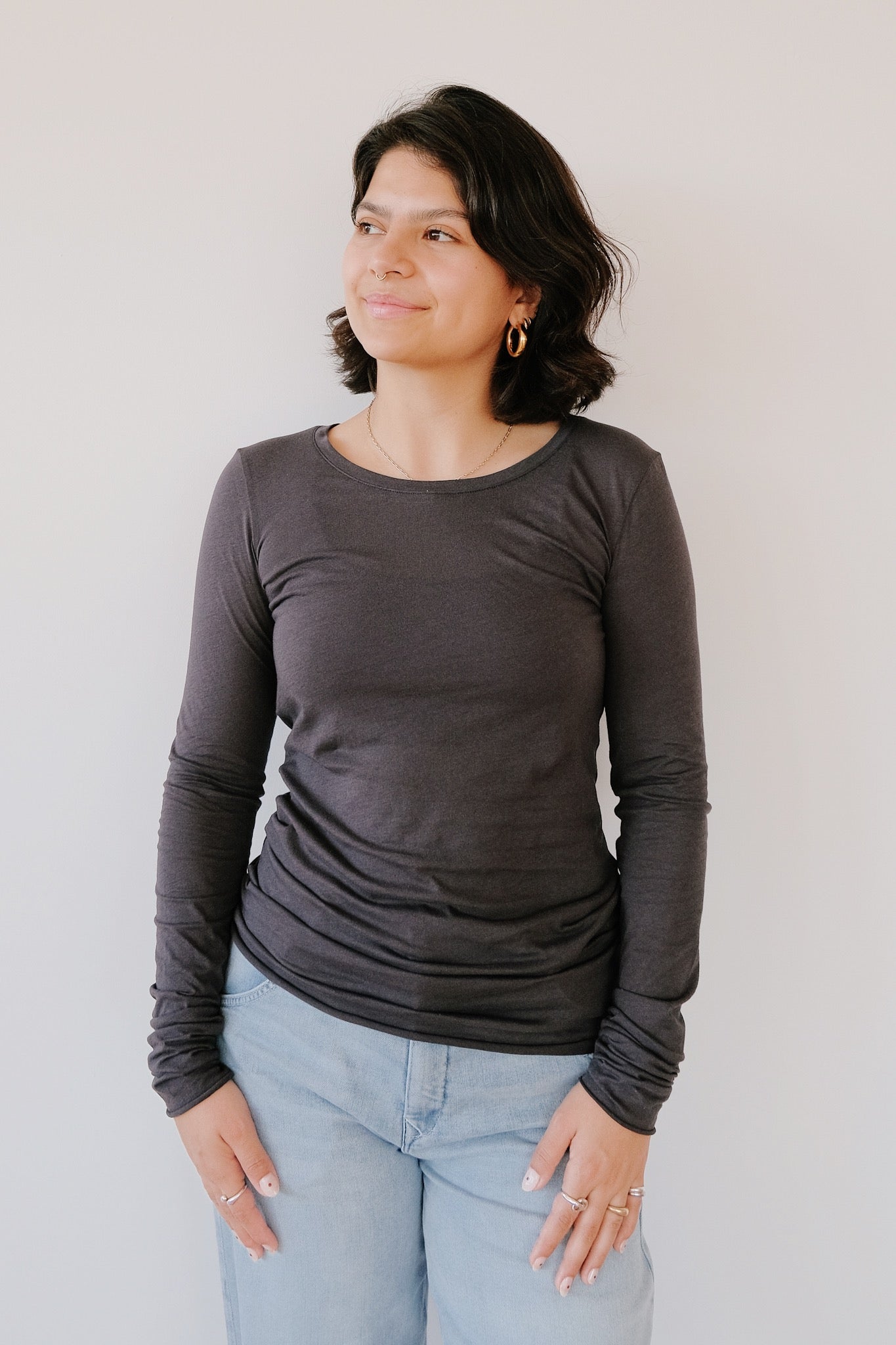 This longsleeve features pracitcal open seams letting you easily shorten it and the sleeves to your perfect length—no fancy sewing skills needed! With dark grey, it’s a classic piece that never goes out of style.
