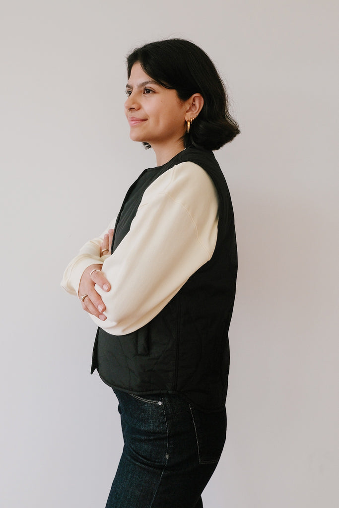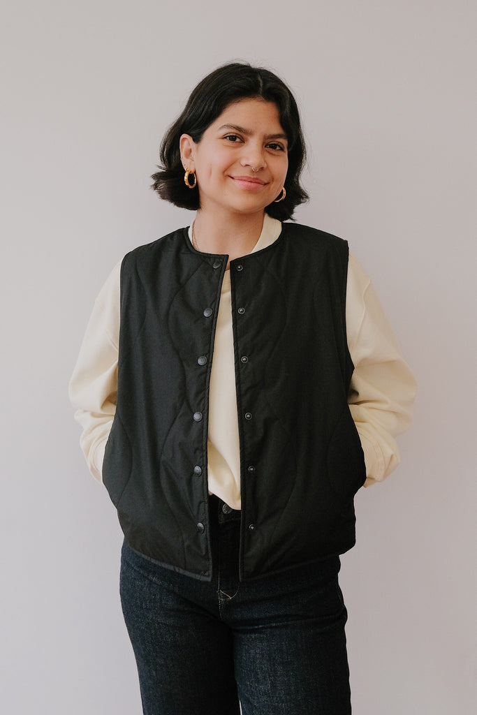 Entdecke deine neue Lieblingsschicht: die Selina Weste in elegantem Schwarz. Diese leichte Weste aus recyceltem Polyester verleiht deinem Outfit nicht nur einen coolen Touch, sondern schont auch die Umwelt. Perfekt für den Lagenlook, wärmt sie, ohne zu beschweren – ideal für Abenteuer oder Stadtbummel mit verspieltem Touch. Schlüpf hinein und lass deinen Style für dich sprechen!