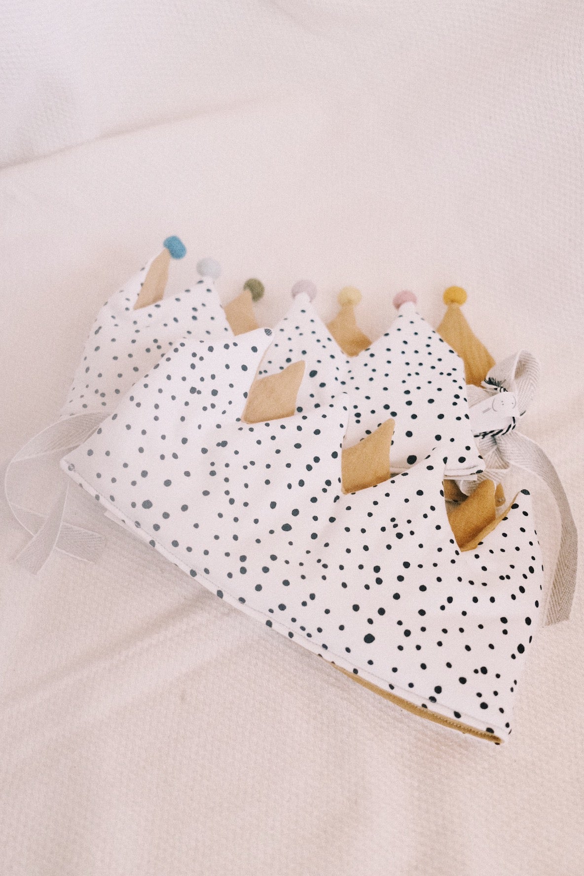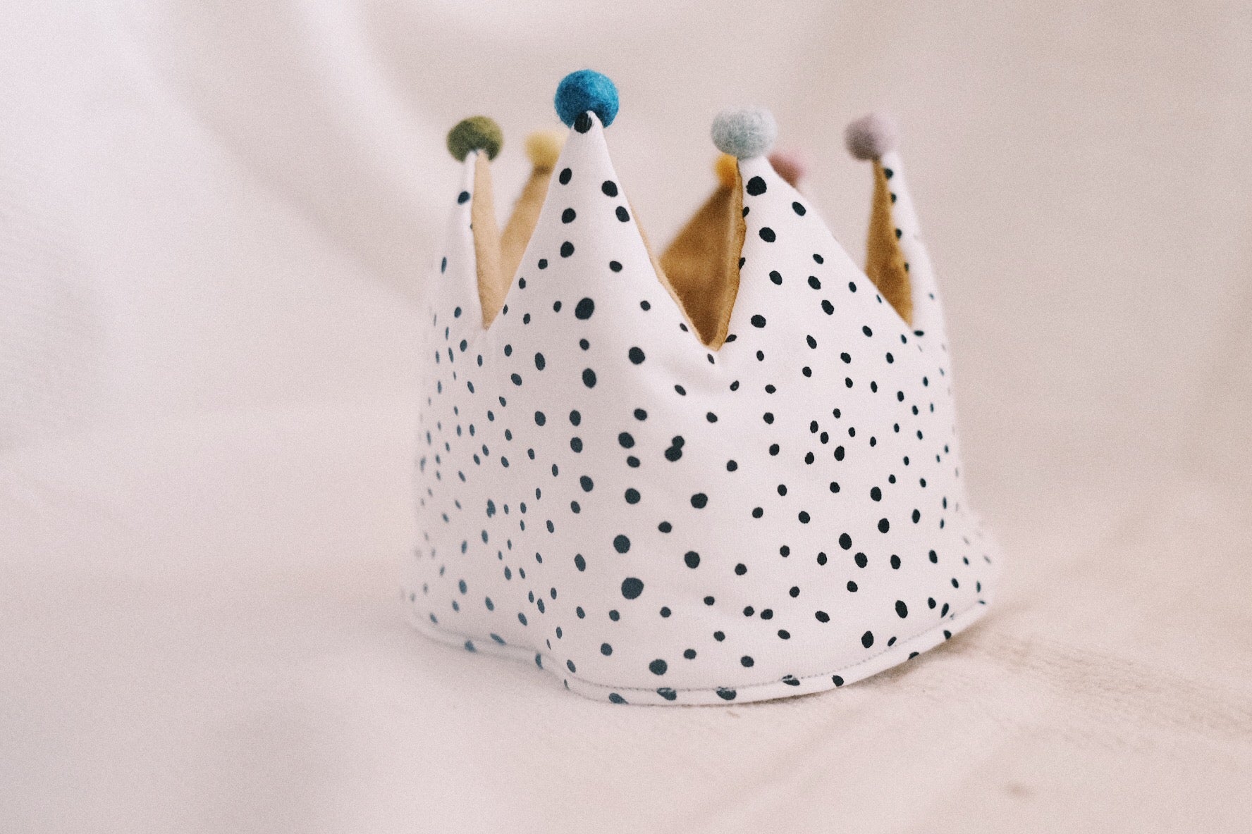 Kinderkrone - schwarze Punkte - Senf - Pompons