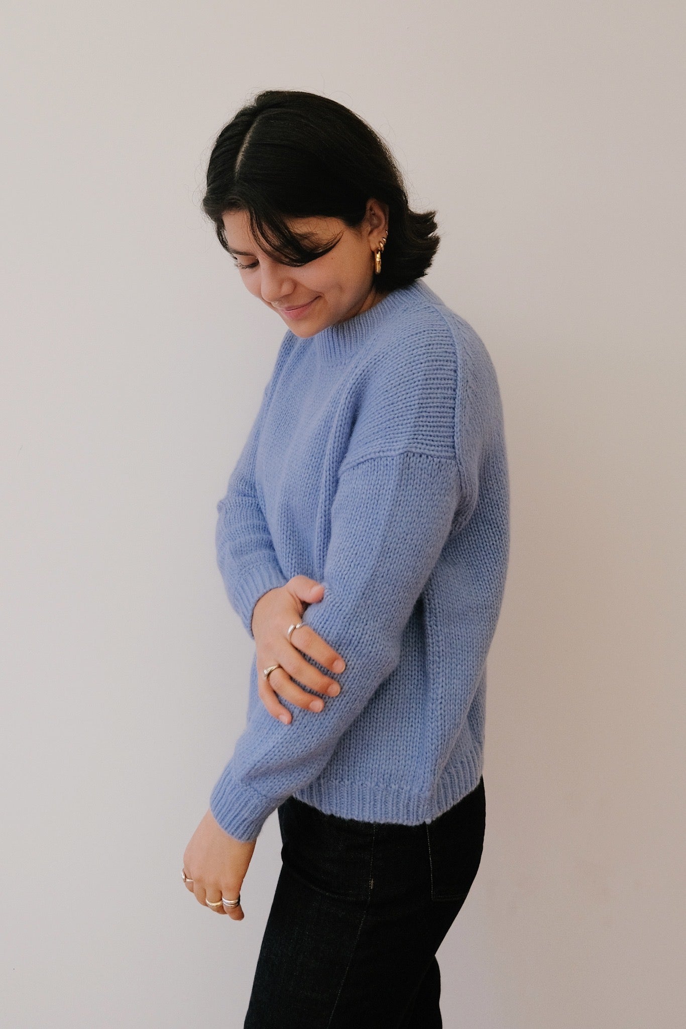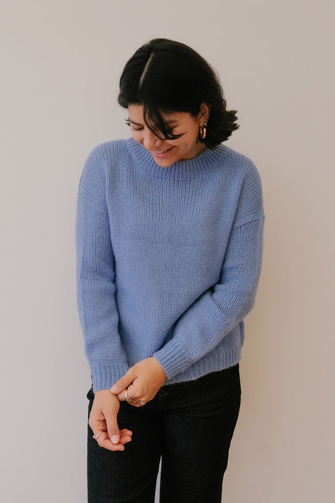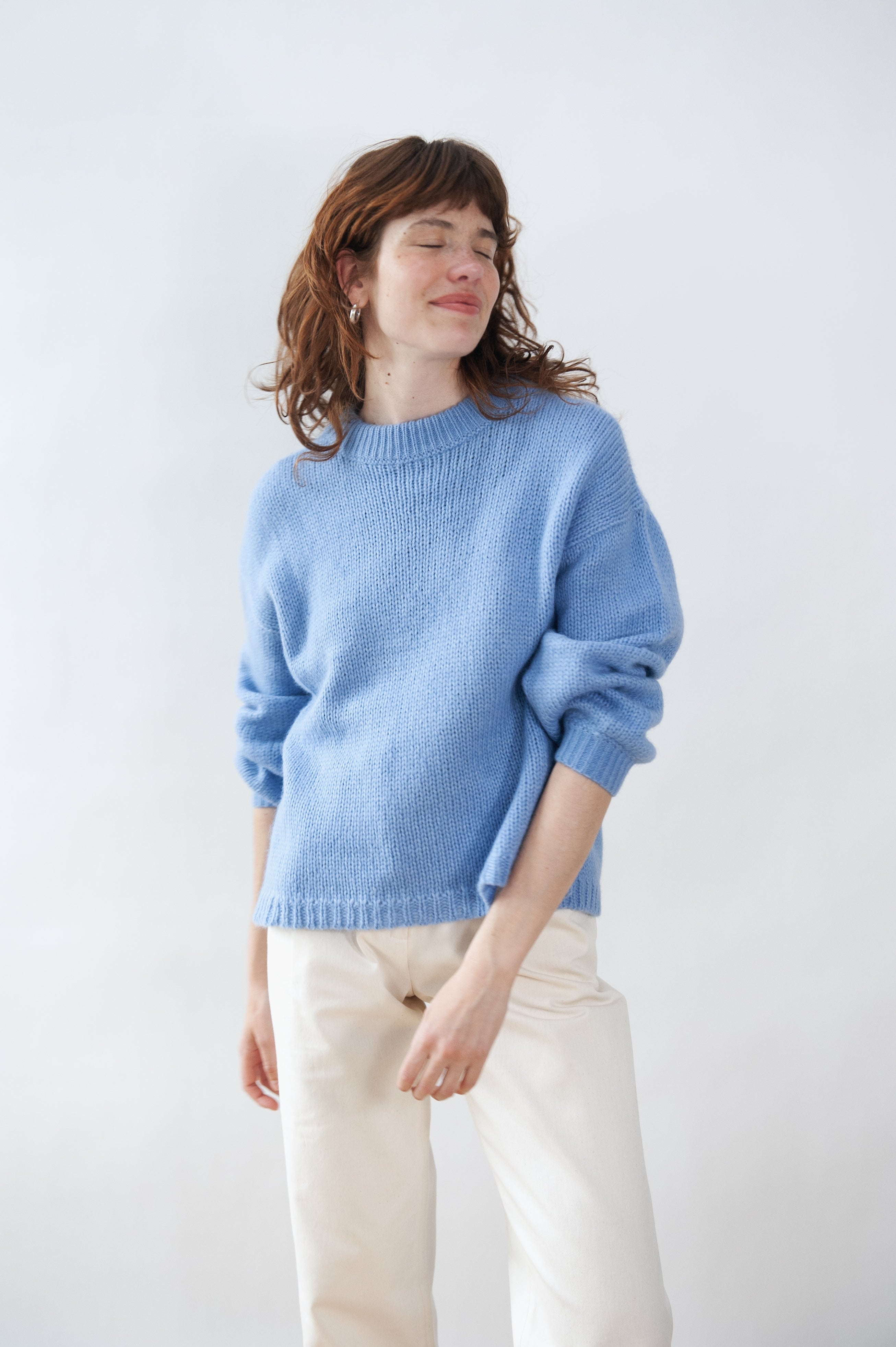 Geniesse kuscheligen Komfort mit diesem verspielten Strickpullover in bezauberndem Delfinblau. Seine gerade, kastige Passform sorgt für eine entspannte Silhouette, während der gerippte Rundhalsausschnitt einen Hauch von klassischem Stil verleiht. Hergestellt aus einer superweichen Alpaka-Baumwollmischung, fühlt er sich sanft auf der Haut an und hält dich warm, ohne zu überhitzen. Perfekt zum Übereinanderziehen oder solo getragen, verleiht dieser Pullover deiner gemütlichen Garderobe eine verspielte Note.