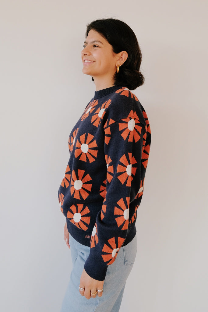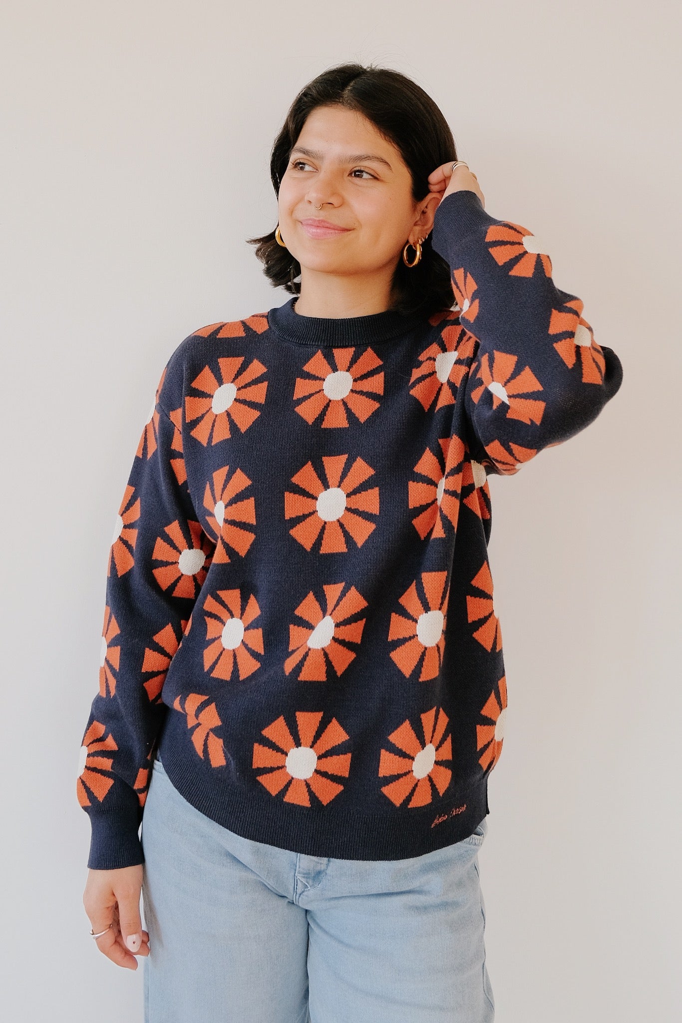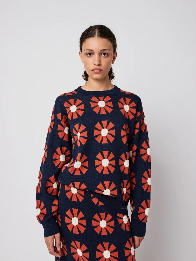 Dieser kuschelige Strickpullover versprüht mit seinem kräftigen Blumen-Jacquardmuster in leuchtendem Rot und Weiss einen Hauch von verspieltem Charme. Hergestellt aus 100 % Bio-Baumwolle, fühlt er sich weich und atmungsaktiv an und bietet ganztägigen Tragekomfort. Perfekt, um jedes Outfit mit einer witzigen, frischen Note aufzupeppen!