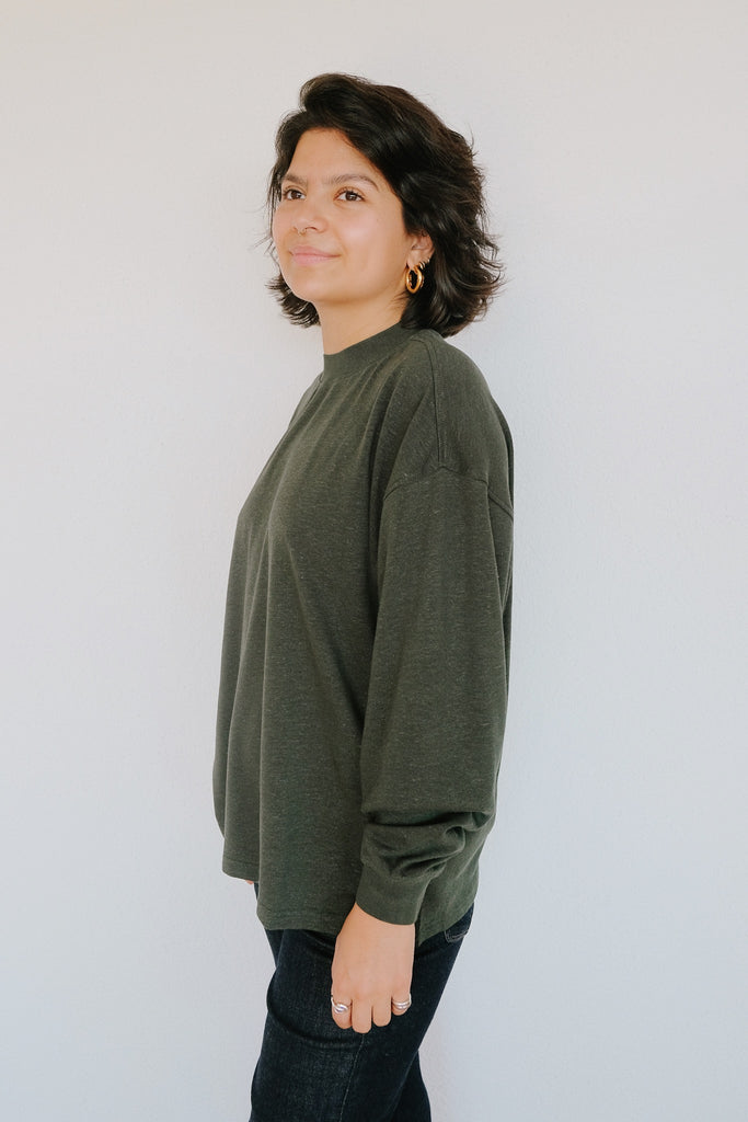 Mach dich bereit für stilvolles Chillen mit diesem Hanf-Longsleeve in Flaschengrün. Mit seinem entspannten Oversize-Schnitt ist dieses Longsleeve perfekt zum Entspannen oder für den Alltag. Du wirst den Komfort dieses Designs lieben. Hanf ist ein wunderbarer Stoff: Er ist feuchtigkeitsableitend, isolierend und äußerst strapazierfähig. Das perfekte Stück für deine Capsule Wardrobe, das viele Jahre hält!
