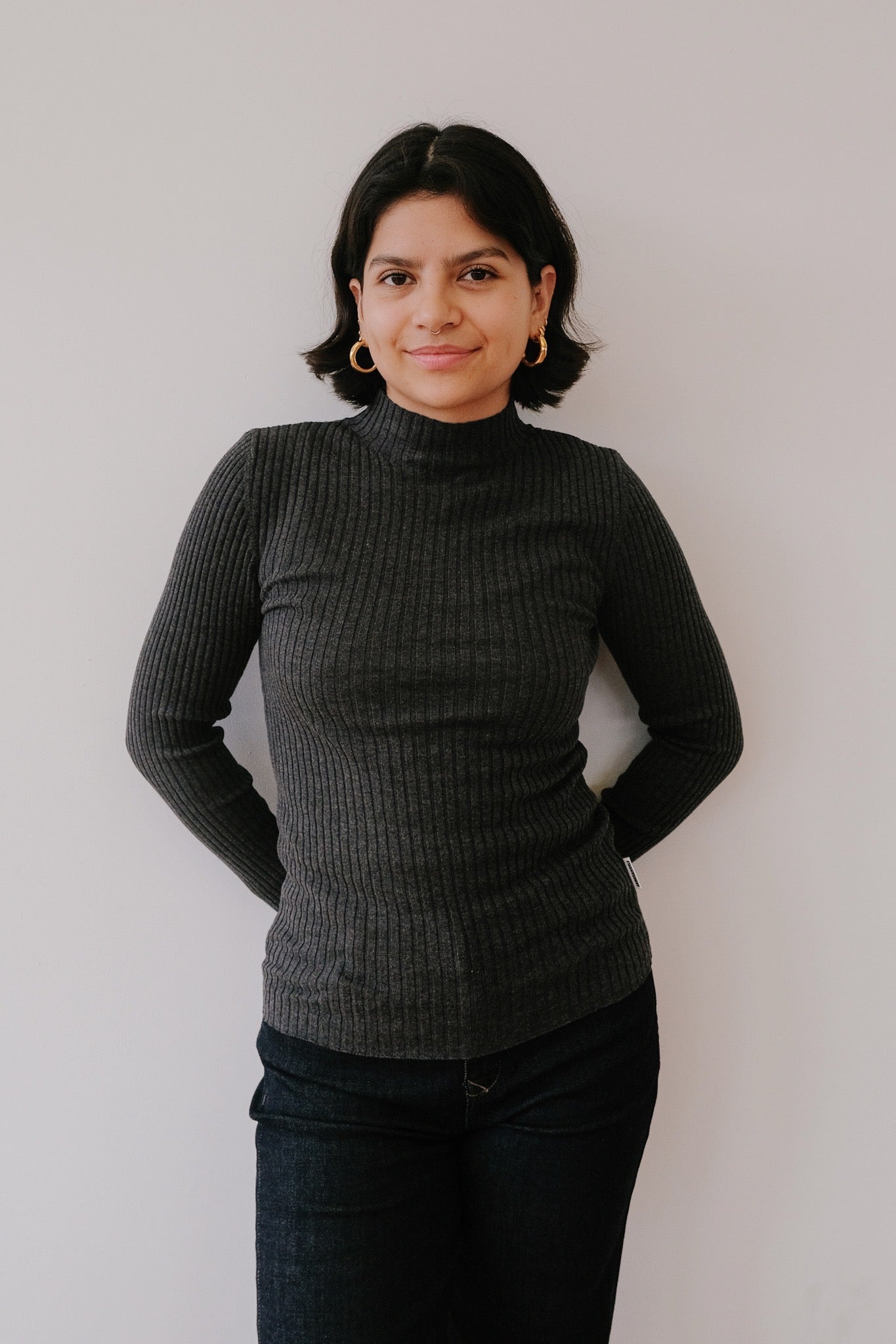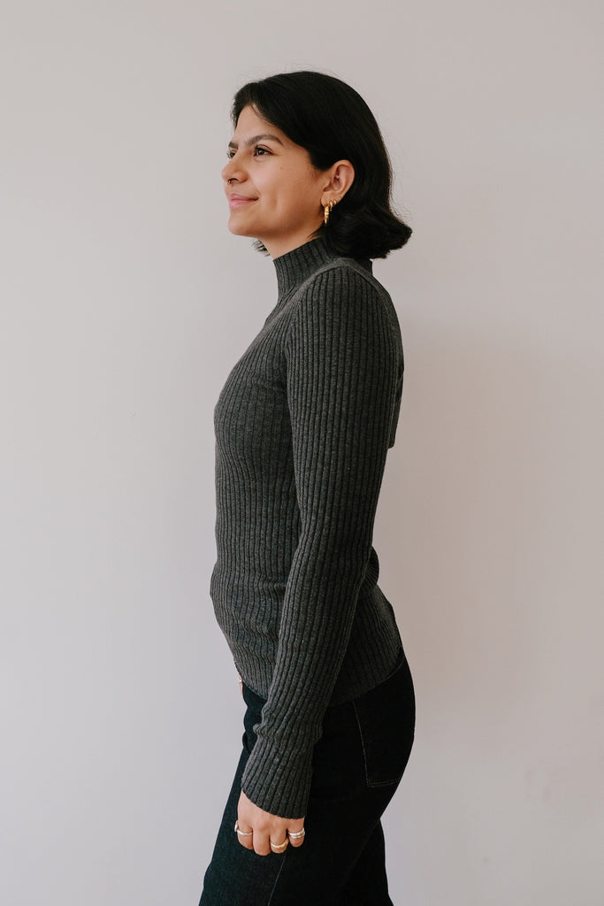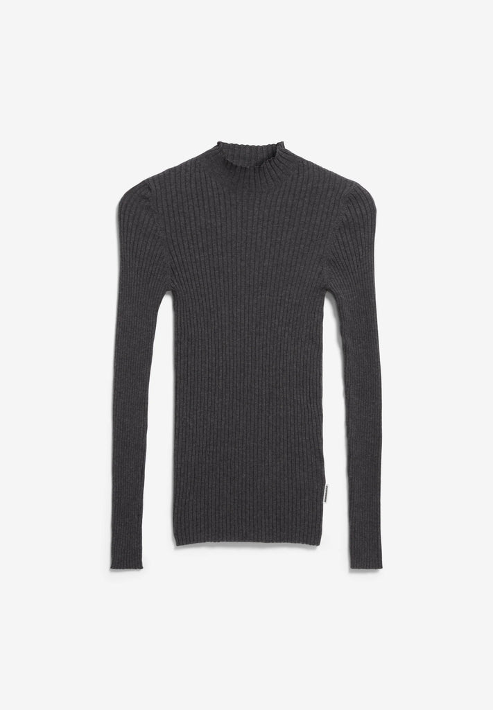Cozy meets chic with the Alaania long-sleeve! Its snug fit and high collar wrap you in softness, thanks to organic cotton that feels like a gentle hug. This timeless basic flatters your curves perfectly and adds an effortless touch of charm to any outfit.