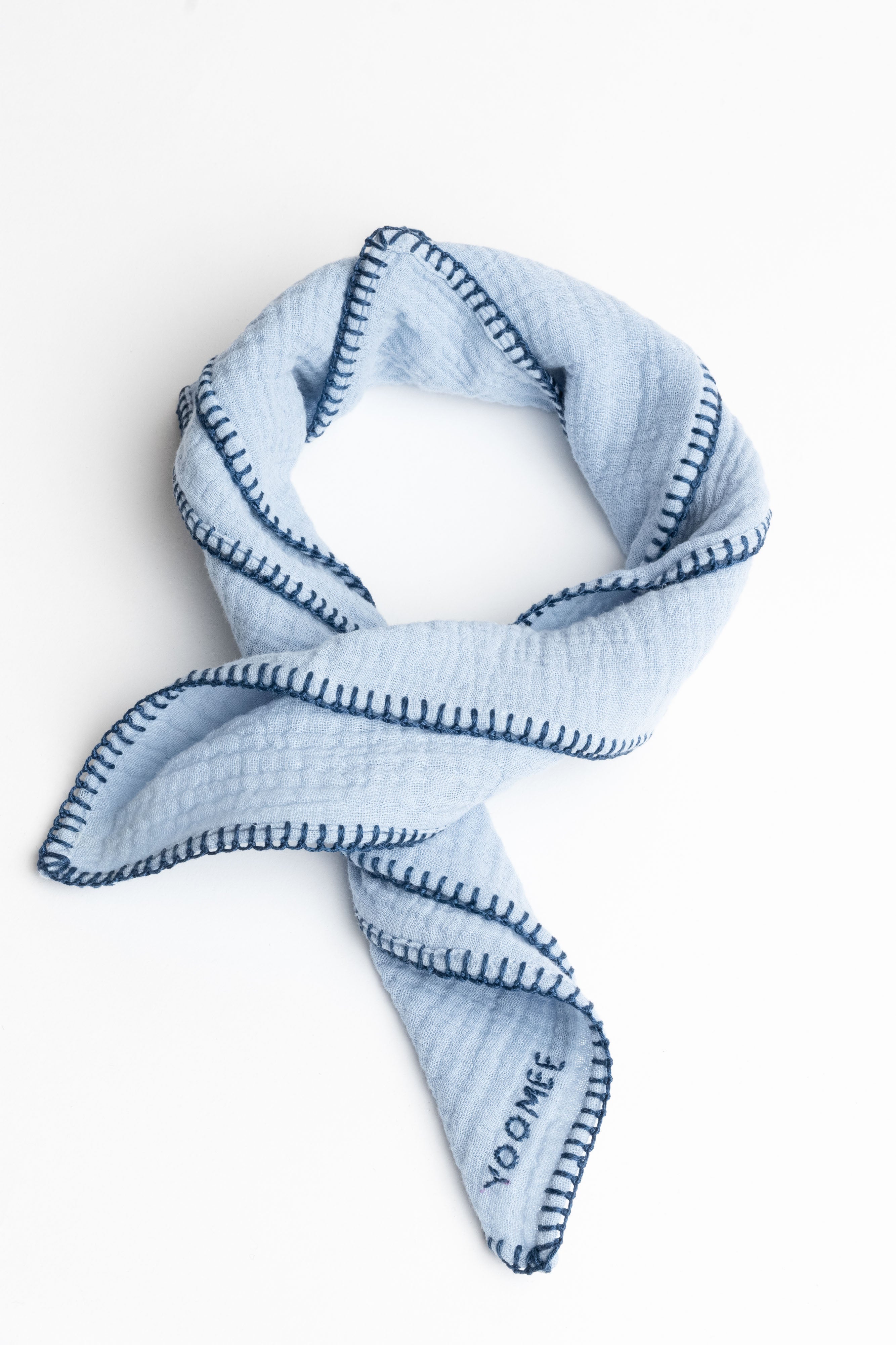 Weich, kuschelig und zeitlos: Dieses Foulard ist aus feiner Double-Gaze-Baumwolle – auch Musselin genannt – gefertigt und fühlt sich traumhaft auf der Haut an.