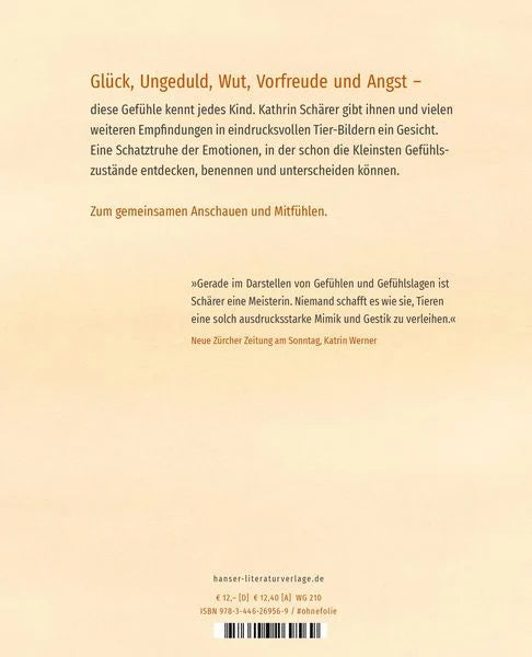 Entdecken Sie 30 Emotionen und Situationen anhand der skurrilen, ausdrucksstarken Tierillustrationen von Kathrin Schärer. Vom entschlossenen Stehen auf einem Sprungbrett bis zum nervösen Mitwippen mit dem Fuß in der Schlange – Kinder und Erwachsene werden diese Gefühle gleichermaßen nachempfinden können. Dieses Buch ist eine wahre Fundgrube an Emotionen!