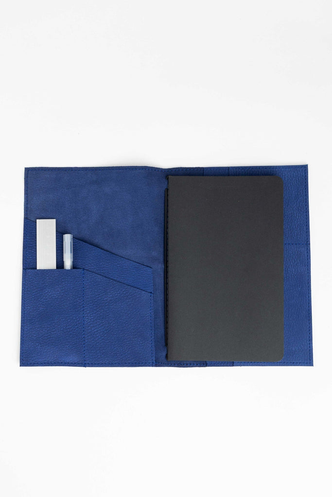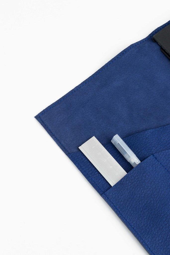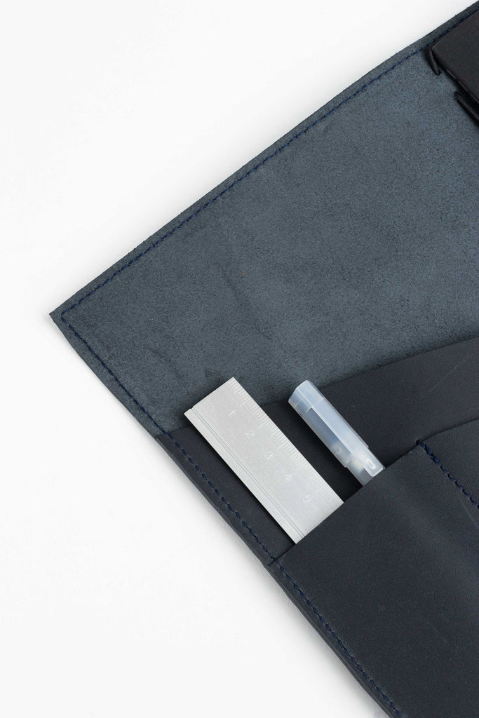 this leather cover holds your notebook, planner, or sketchbook with care. thoughtfully designed compartments offer space for pens, cards, and other essentials – keeping everything you need close at hand, whether you're at work, on the go, or in a creative flow.