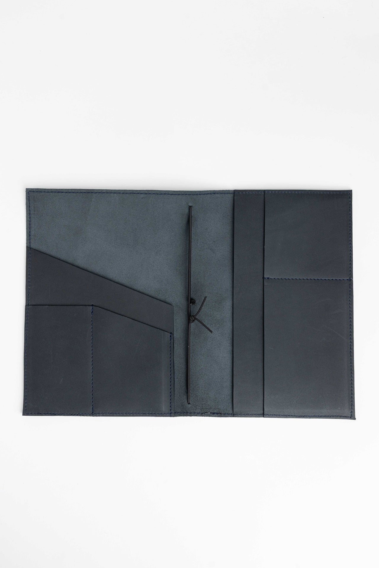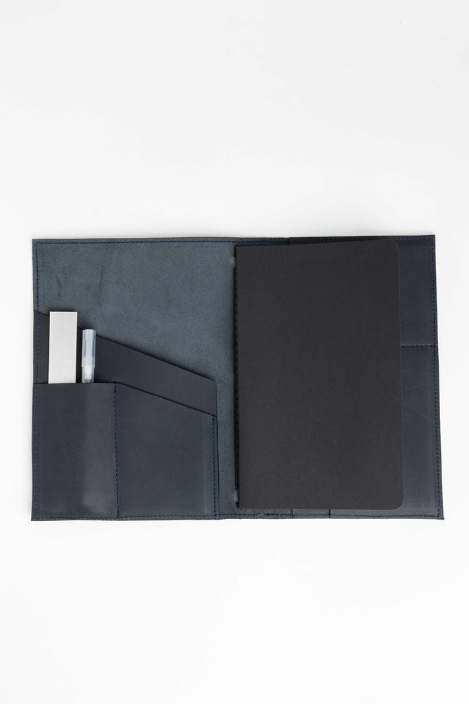 this leather cover holds your notebook, planner, or sketchbook with care. thoughtfully designed compartments offer space for pens, cards, and other essentials – keeping everything you need close at hand, whether you're at work, on the go, or in a creative flow.