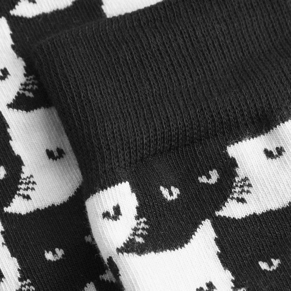 Verschönere Dein Socken-Game mit diesen verspielten schwarz-weissen Socken mit Katzenmuster aus Fairtrade-zertifizierter Baumwolle. Weich und bequem verleihen sie Deinem Alltagslook einen Hauch von Spass und Stil. Perfekt für Katzenliebhaber:innen, die ihrem Outfit eine skurrile Note verleihen möchten!