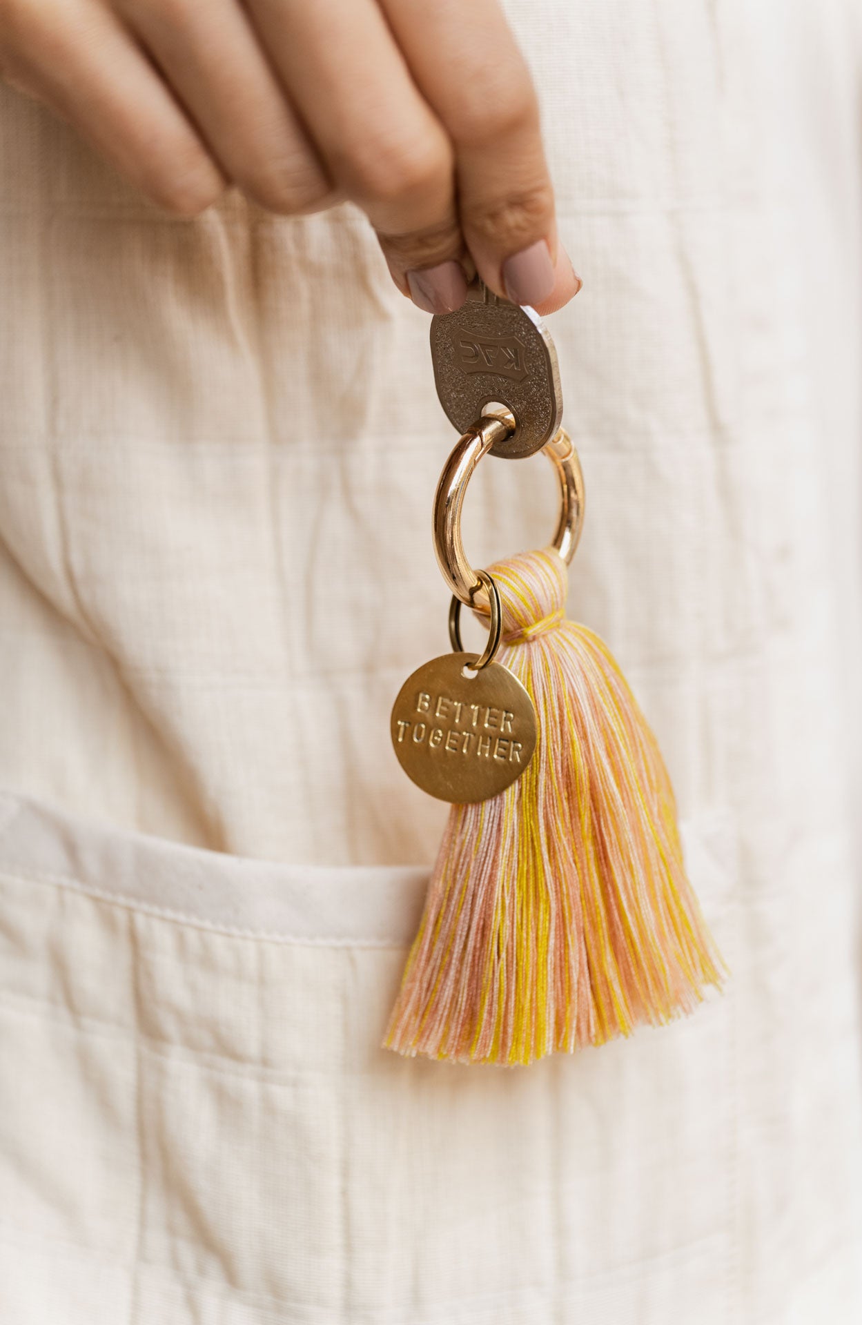 Die BAHJA-Quaste ist die perfekte Ergänzung zu Ihrer Tasche, Ihrem Schlüsselbund oder Ihrem Schlüsselanhänger für den Moment der Freude, den Ihr Tag braucht.