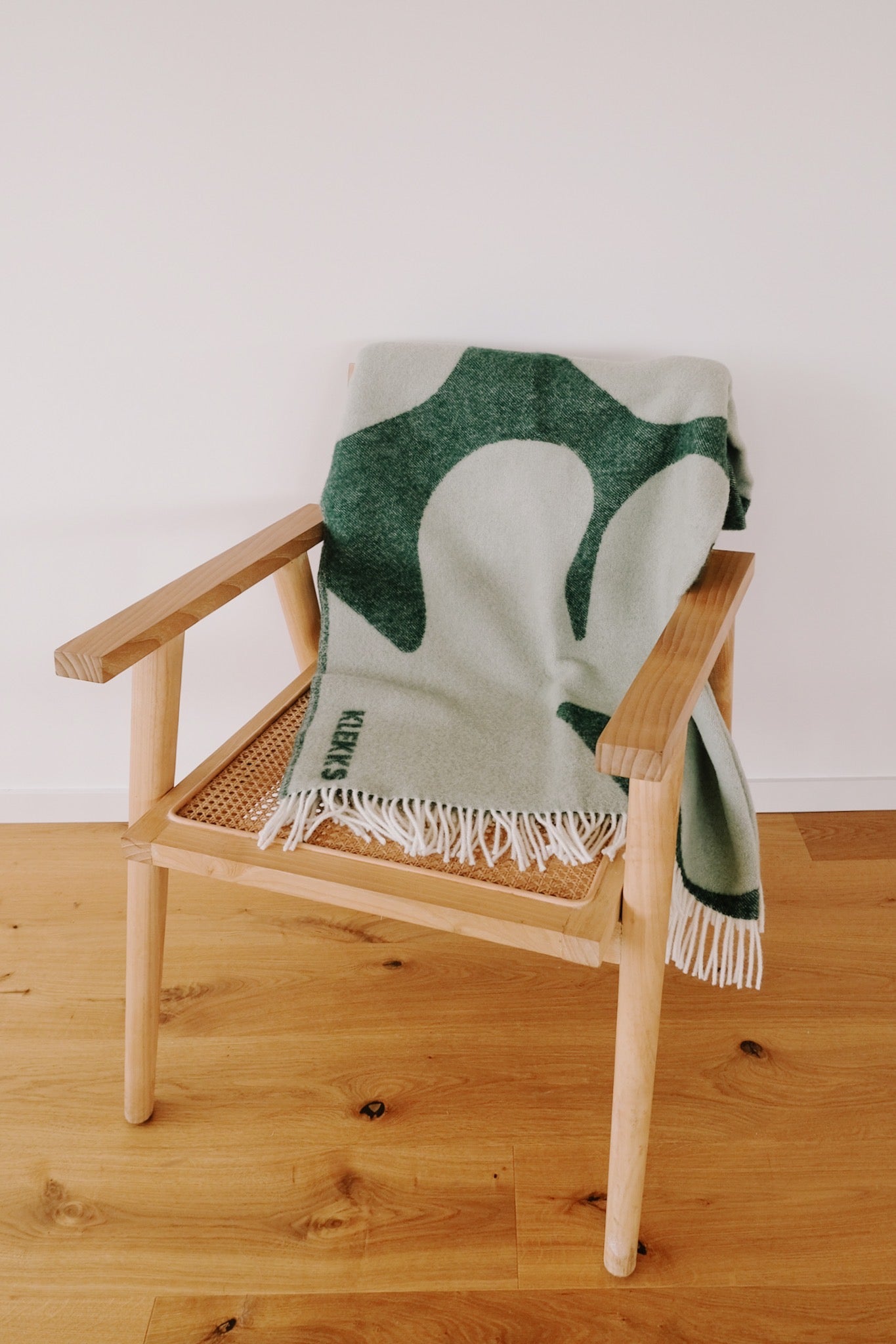 Wir präsentieren Klekks Nr. 18, die perfekte Wolldecke für Natur- und Grünliebhaber! Mit zwei wunderschönen Grüntönen schafft diese Decke Ihre eigene gemütliche Oase.