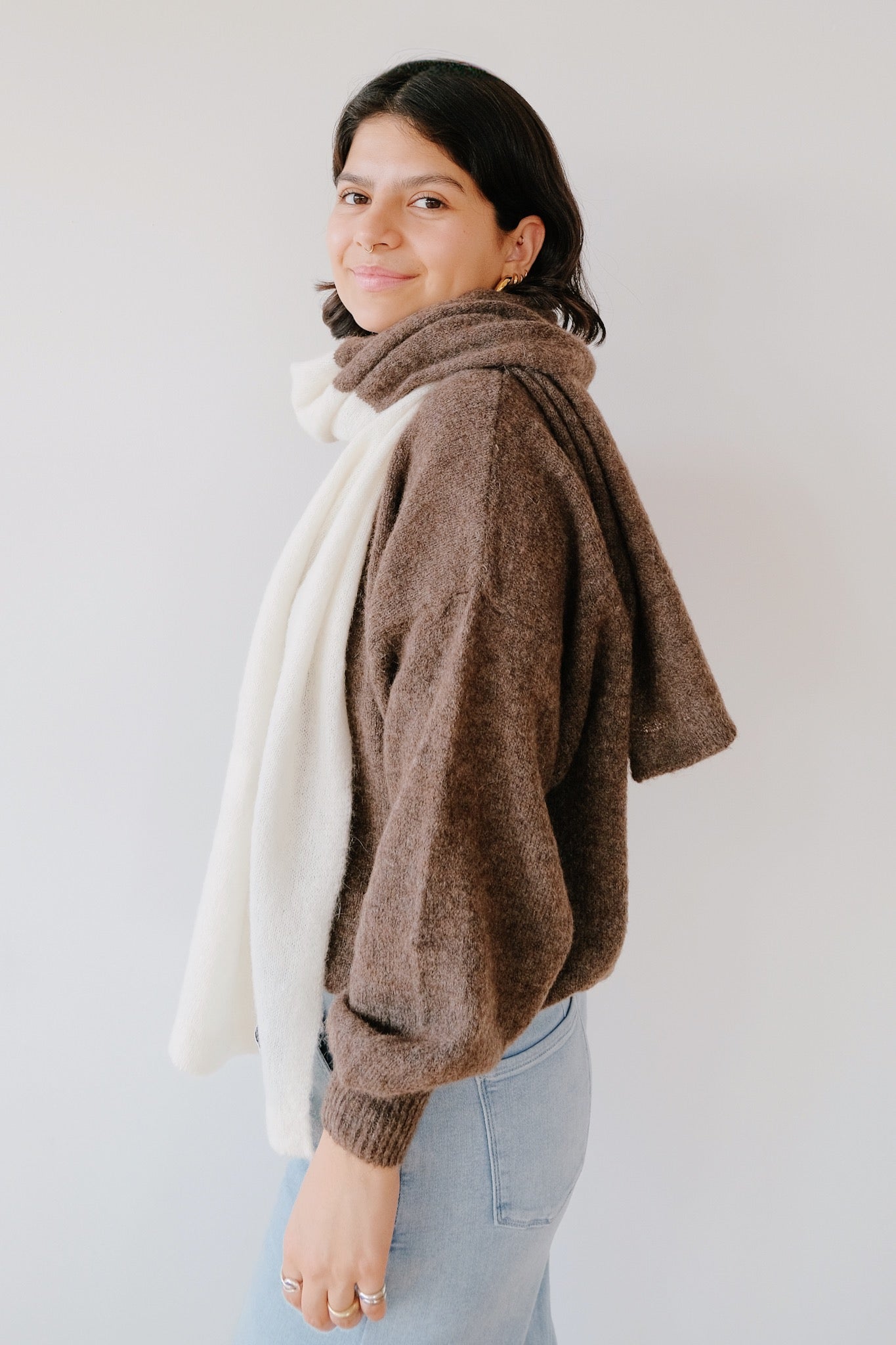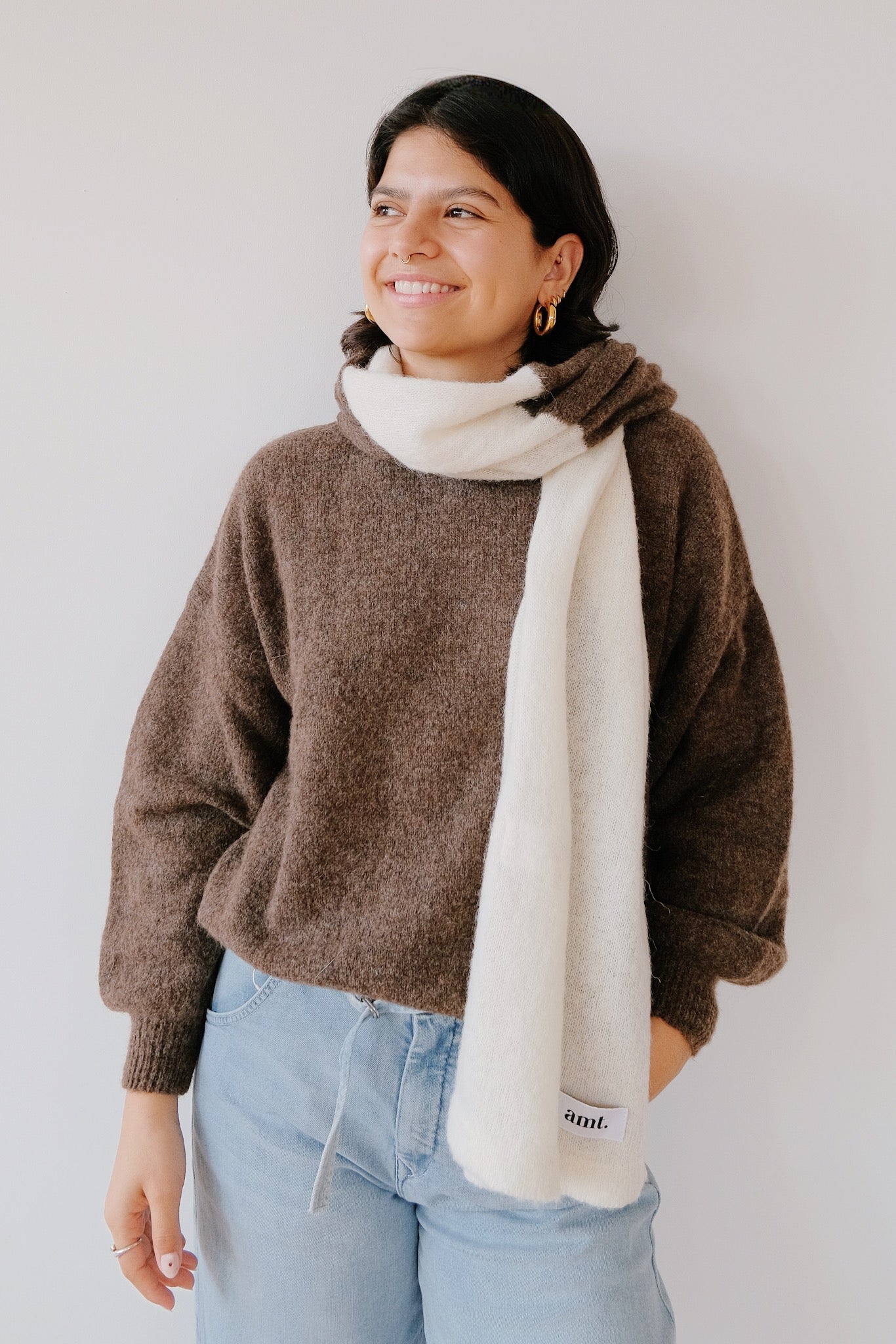 Ein superweicher und cooler Schal, der an kalten Tagen warm hält und dem grauen Wetter etwas Farbe verleiht.