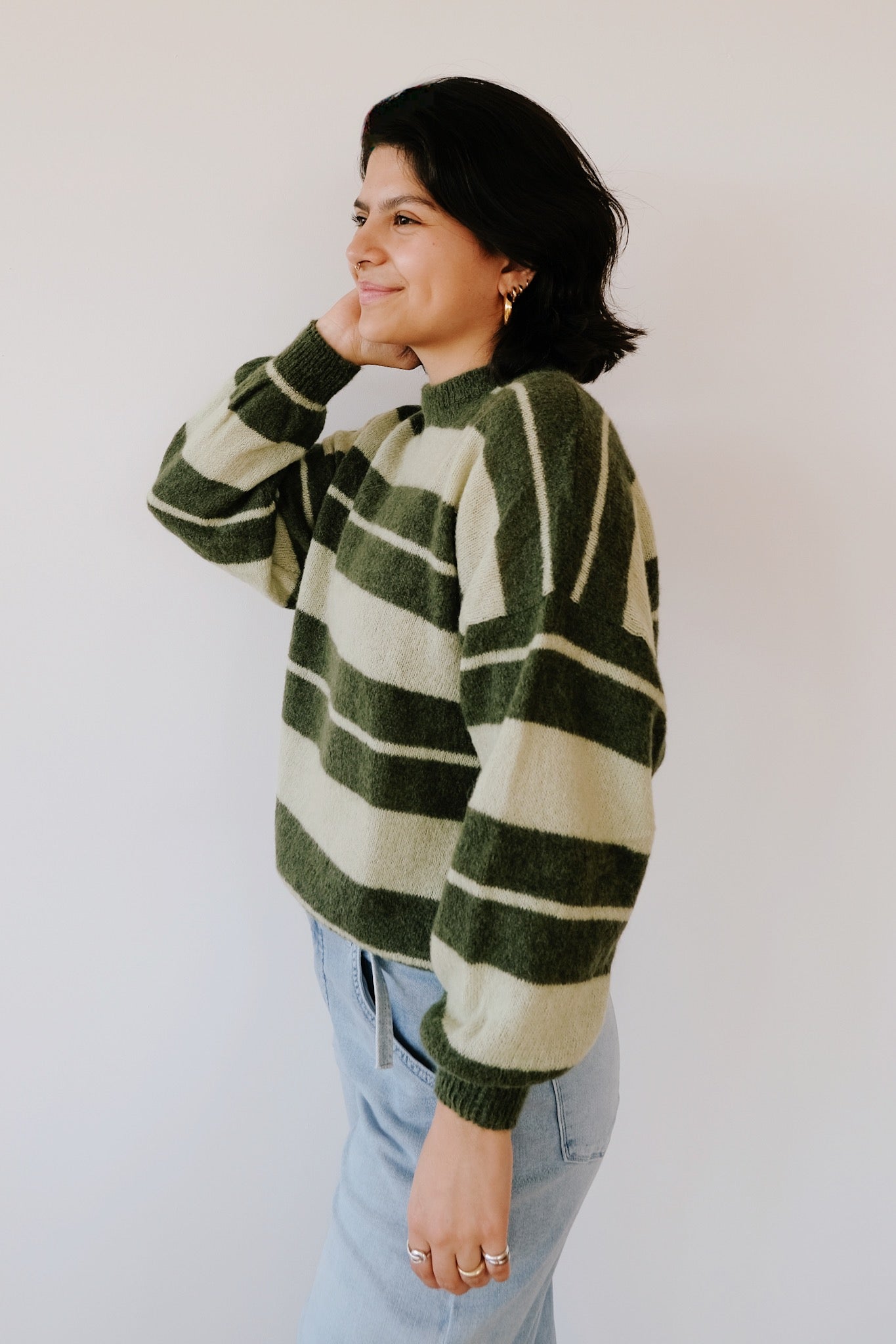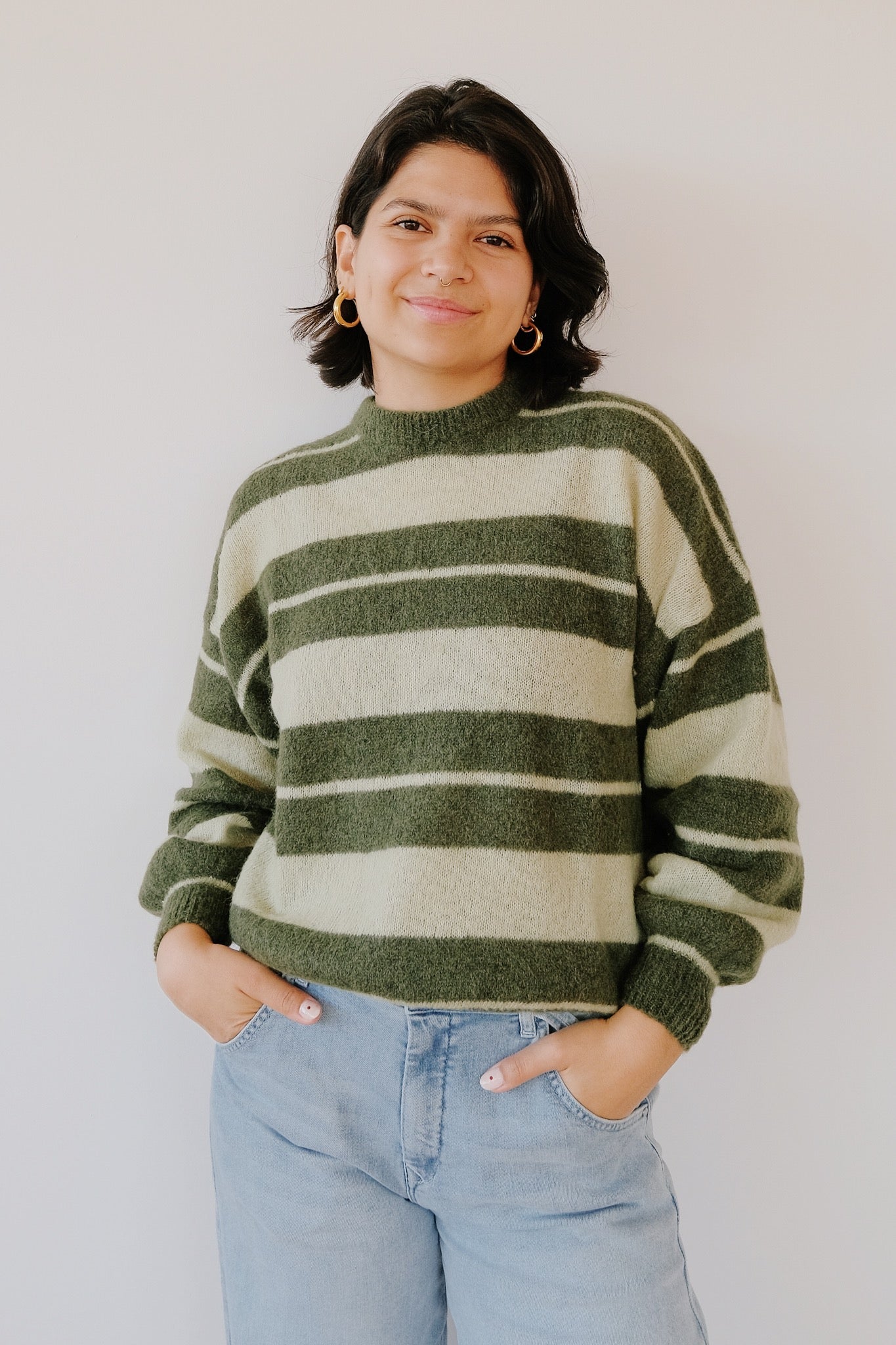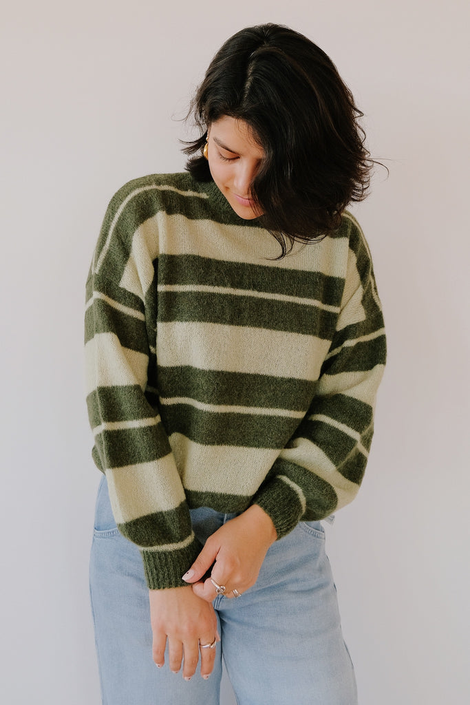 Wollpullover - Matcha - Grüne Streifen