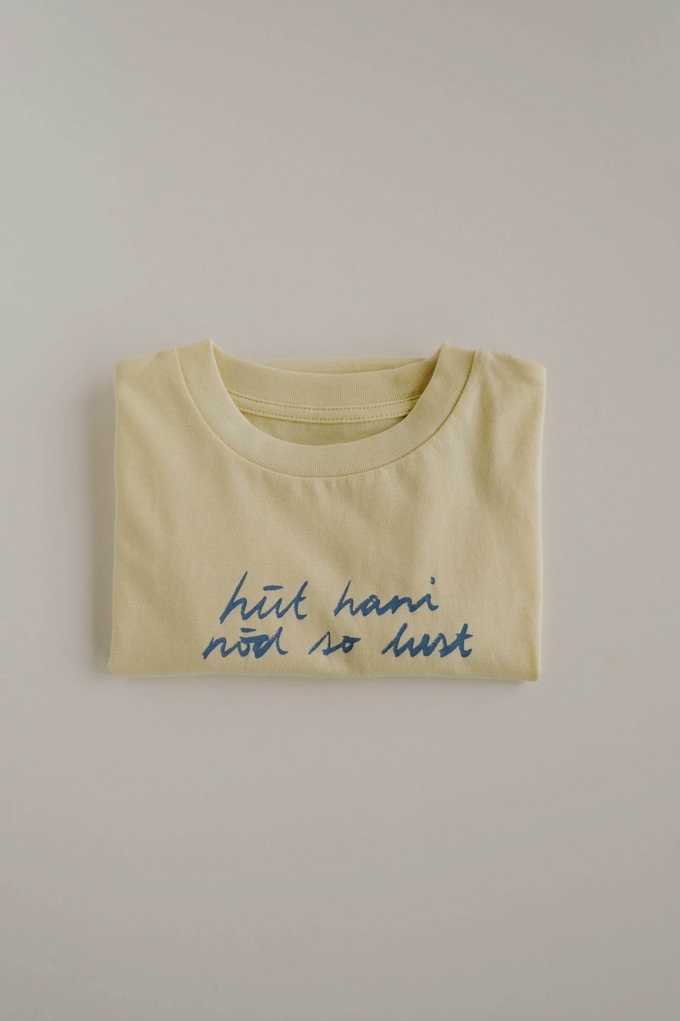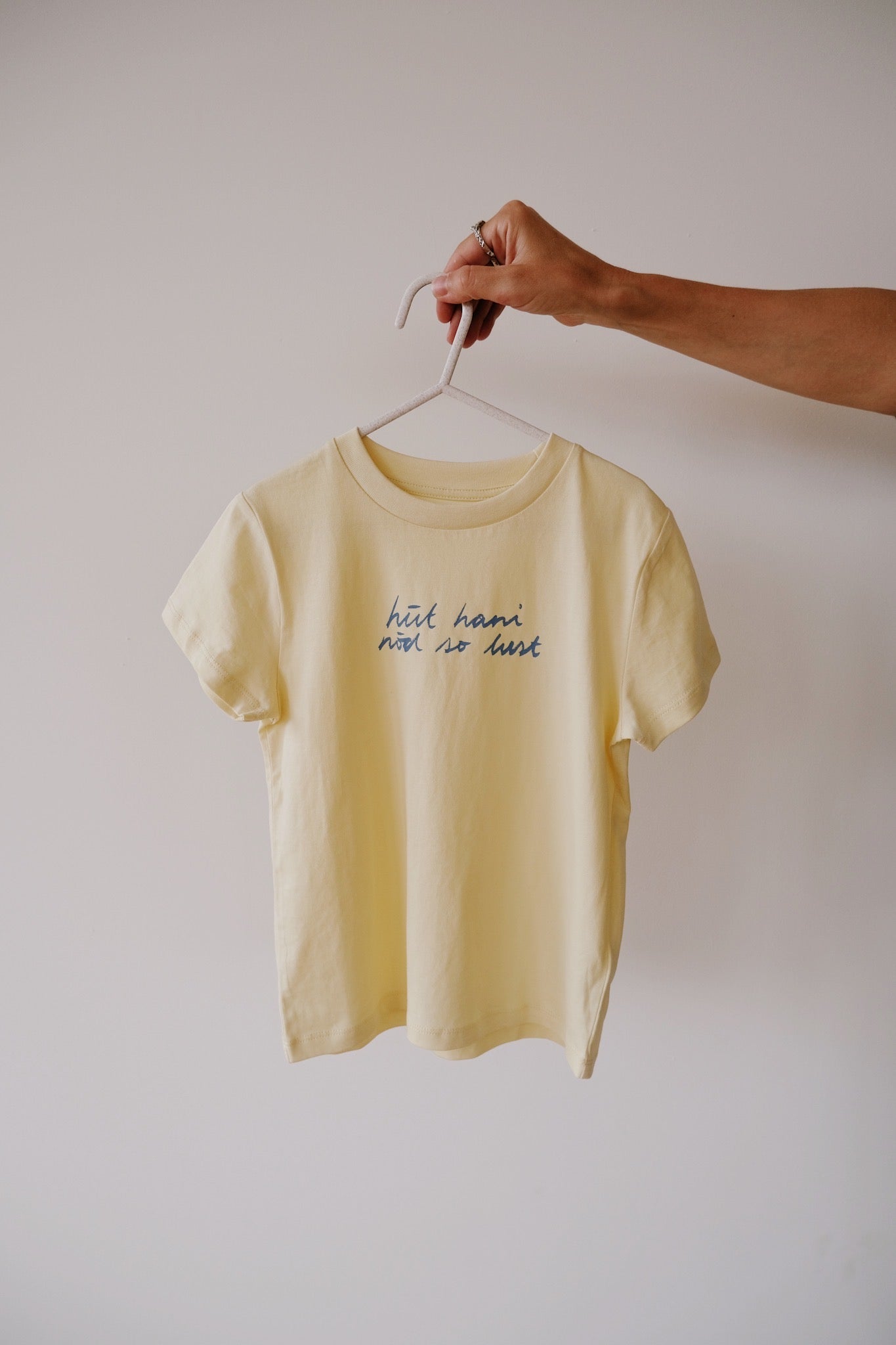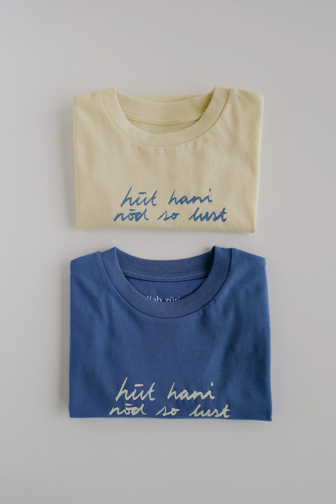 Manchmal ist uns einfach nicht danach – und jetzt kann auch Dein Kind das zeigen! Dieses verspielte Kinder-T-Shirt in hellgelb trägt den frechen Slogan „hüt hani nöd so lust“ und ist perfekt, um schlechte Laune auszudrücken. Kombiniert es mit dem passenden Baby-Body oder Erwachsenen-T-Shirt für lustige Familien- oder Geschwister-Looks.