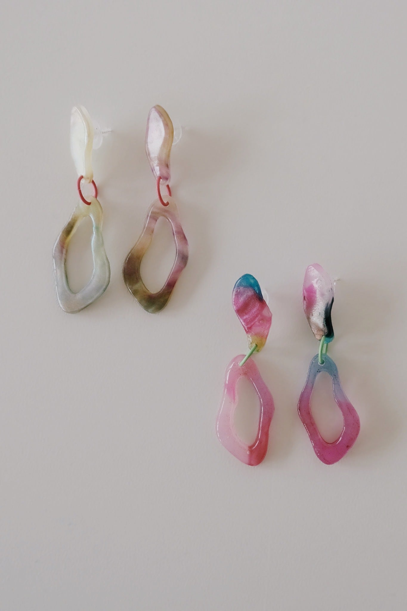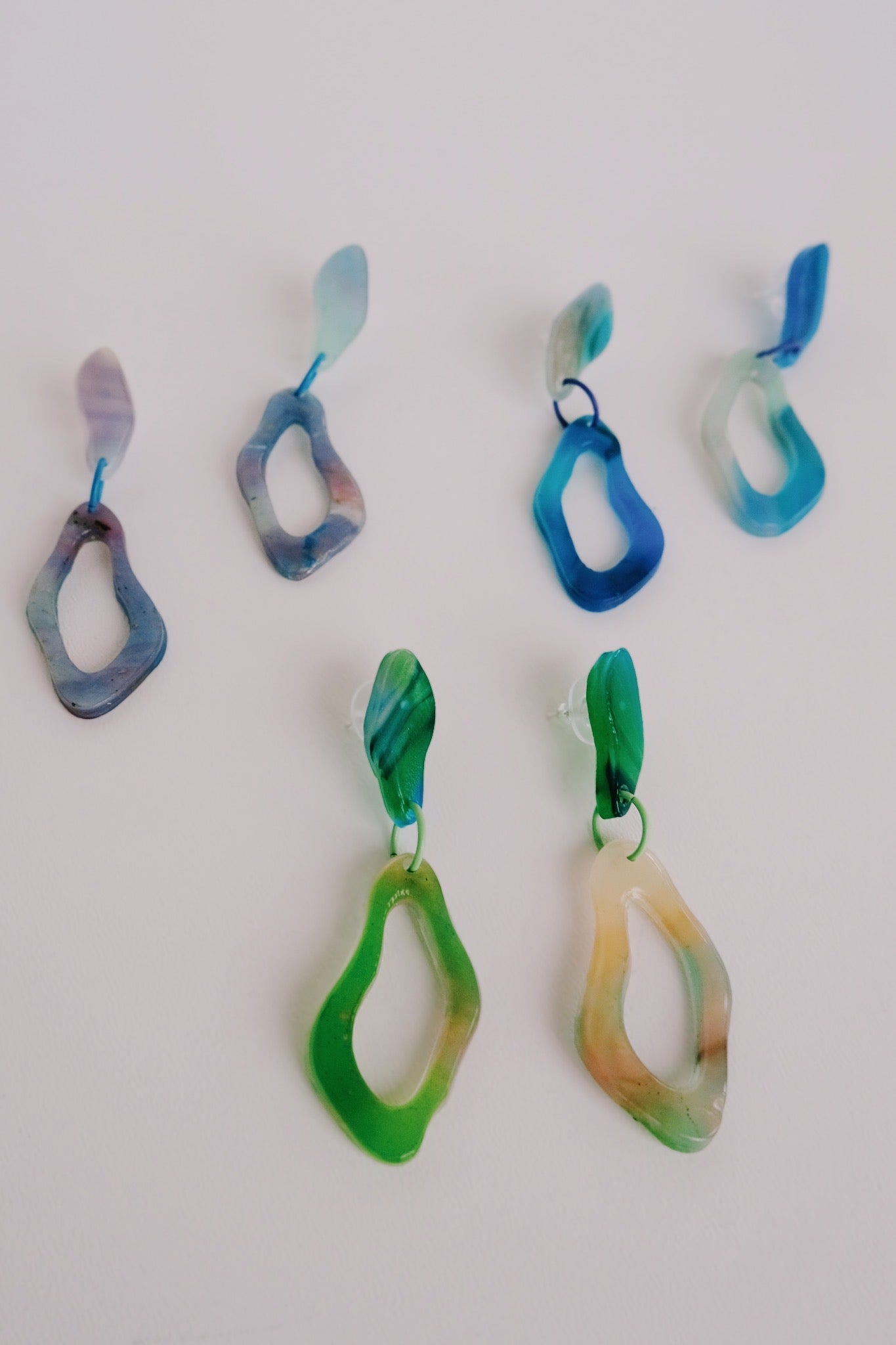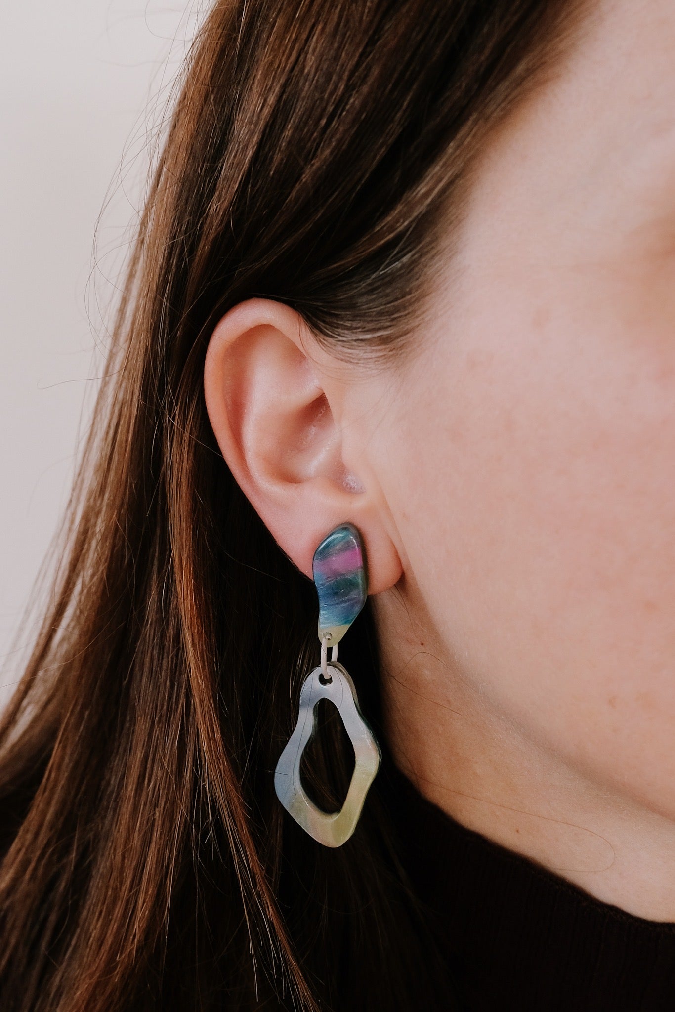 Lis Leon betreibt ein kleines nachhaltiges Label mit Sitz in Zürich. Ihre handgefertigten Ohrringe werden aus recycelten Materialien – hauptsächlich aus gebrauchten Plastiktüten und Hula-Hoop-Reifen – gefertigt. Jedes Stück ist ein Unikat. Wir haben drei Farbtöne kategorisiert: Ocean (Blautöne), Mermaid (Grüntöne/Rosatöne) und Aquarell (Hellblautöne). Ein süßes Detail: Jedes Ohrringpaar hat in der Mitte einen anderen kleinen, bunten Verbindungsring.