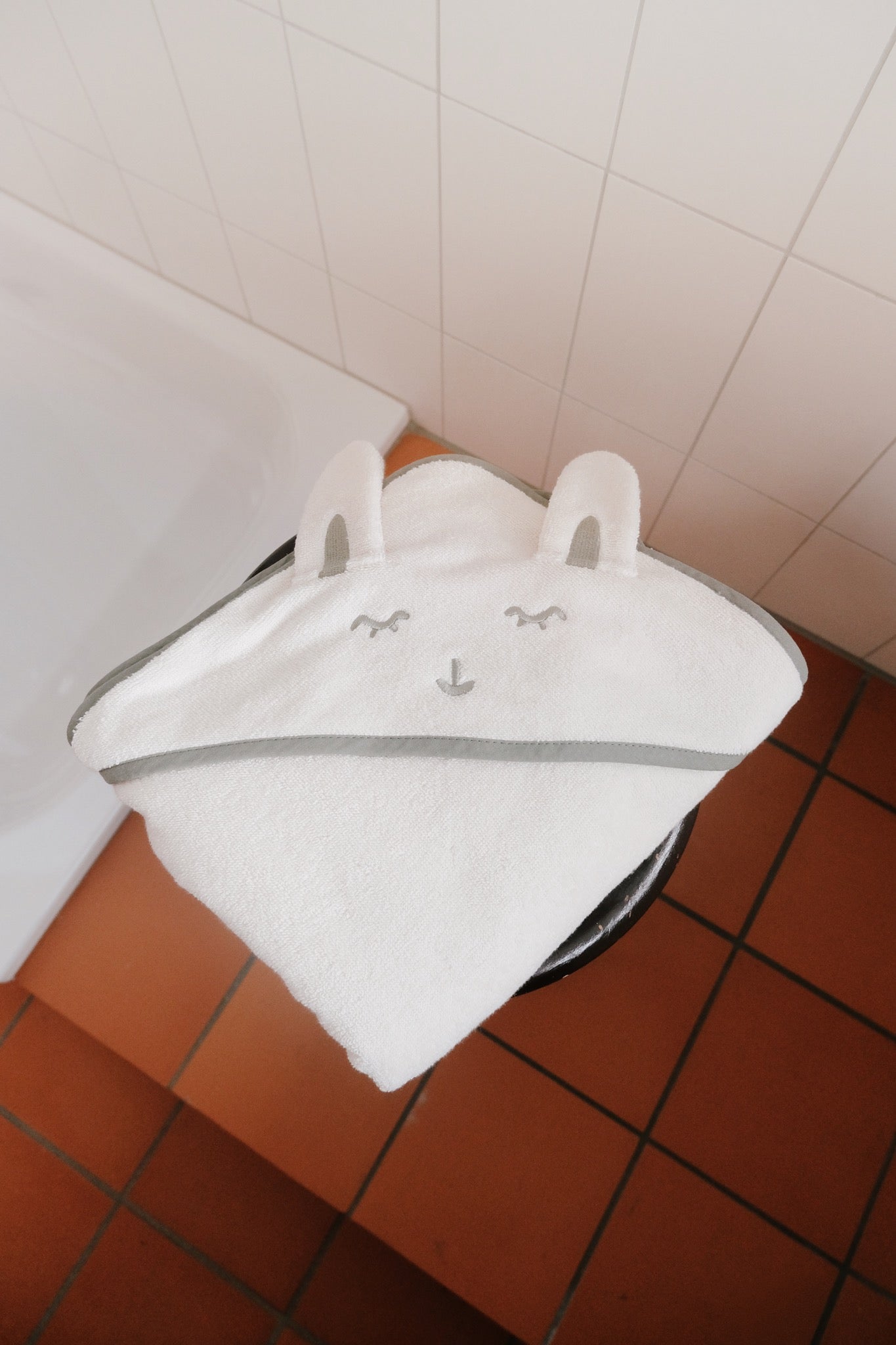 Verleihe dem Baden mit diesem bezaubernden Kapuzen Tuch in Cremeweiss mit süssem Hasenmotiv einen gemütlichen Charme. Es ist der perfekte Begleiter für kleine und grosse Badegäste, die sich einen verspielten Farbtupfer wünschen. Weich, kuschelig und einfach nur niedlich – der ideale Begleiter für mehr Badespass. Dies ist eine Zusammenarbeit zwischen uns und Lavie - wir freuen uns sehr!
