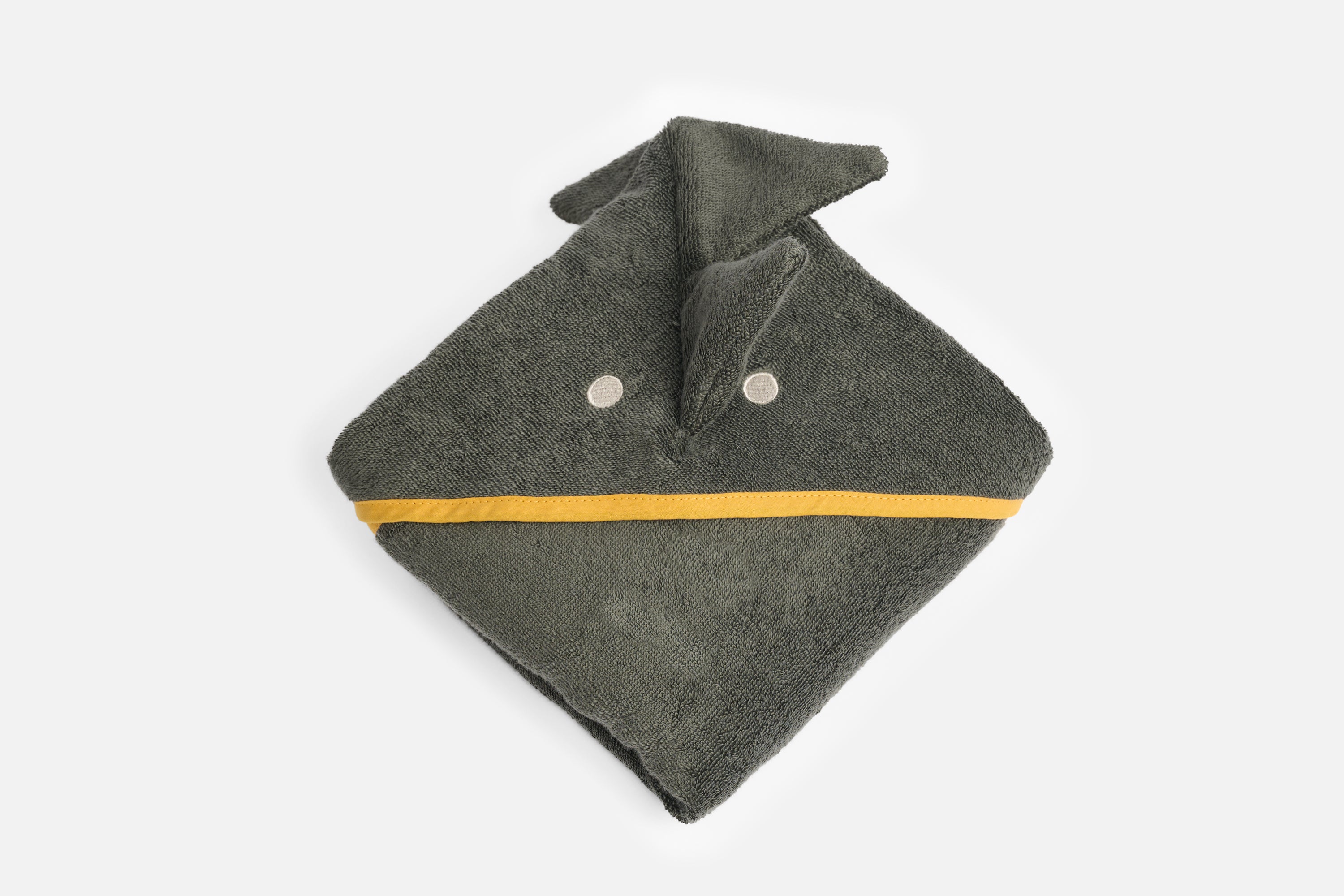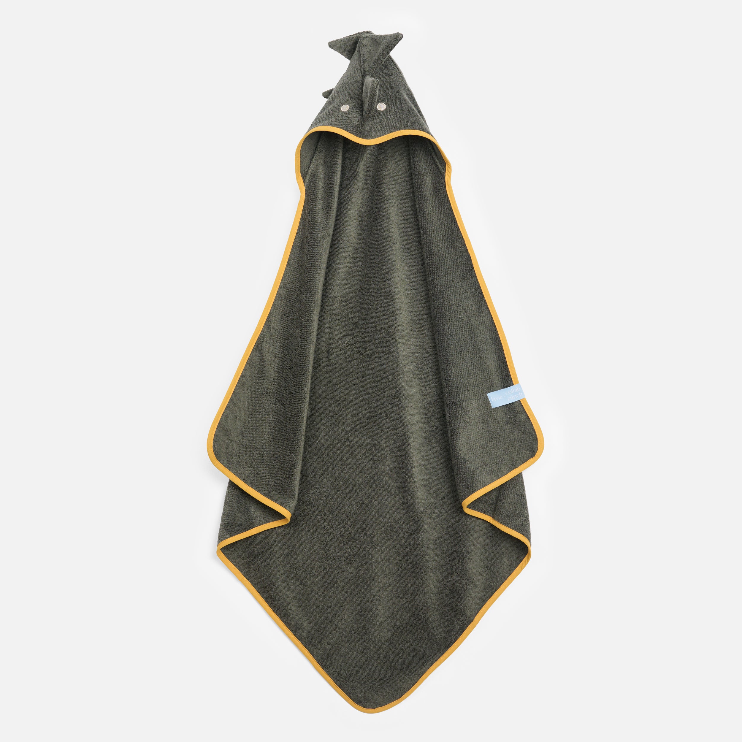 Verleihe dem Baden mit diesem bezaubernden Kapuzen Tuch in Dunkelgrün mit süssem Dinomotiv einen gemütlichen Charme. Es ist der perfekte Begleiter für kleine und grosse Badegäste, die sich einen verspielten Farbtupfer wünschen. Weich, kuschelig und einfach nur niedlich – der ideale Begleiter für mehr Badespass. Dies ist eine Zusammenarbeit zwischen uns und Lavie - wir freuen uns sehr!