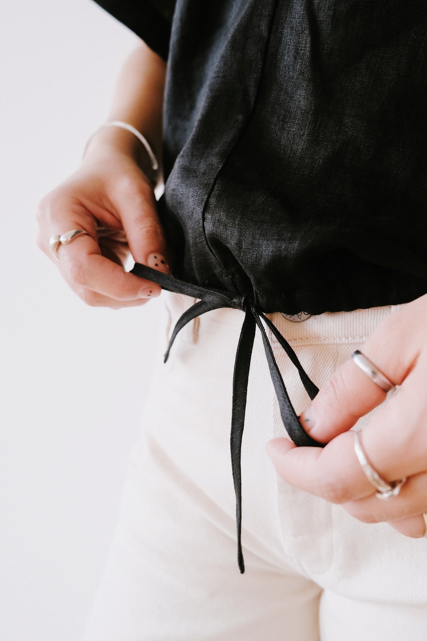 Mühelose Eleganz aus Leinen trifft auf praktisches Design. Das Dora-Top besticht durch einen lässigen V-Ausschnitt und einen Kordelzug am Saum für viele Möglichkeiten – locker getragen für entspannte Lässigkeit oder tailliert für eine definiertere Silhouette. Gefertigt aus atmungsaktivem Leinen, ist dieses vielseitige Top der perfekte Begleiter für entspannte Wochenend-Looks und stylische Outfits. Ein Top, unendliche Möglichkeiten.