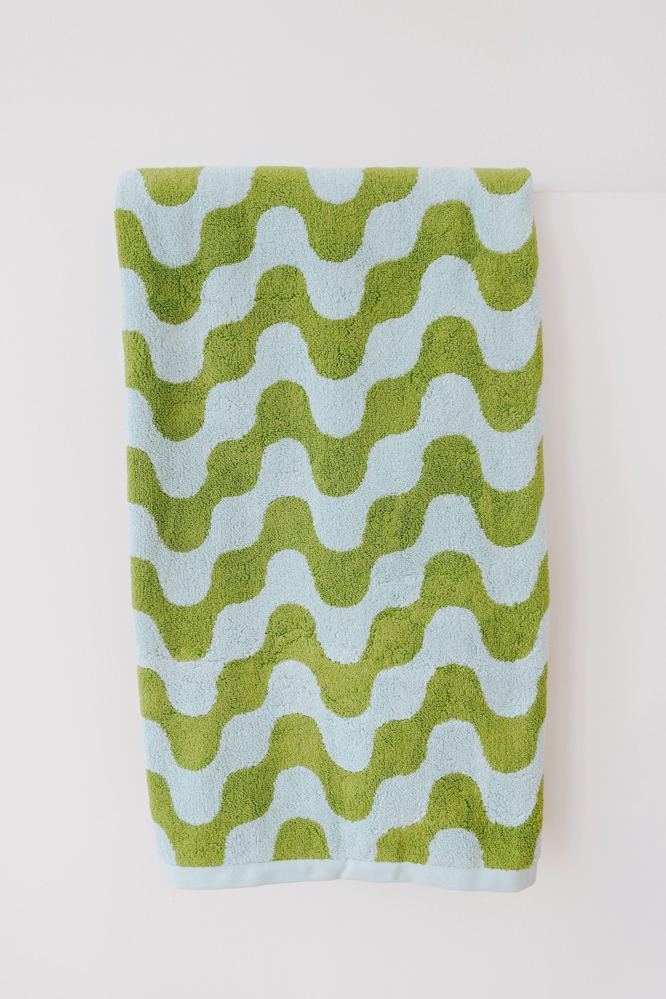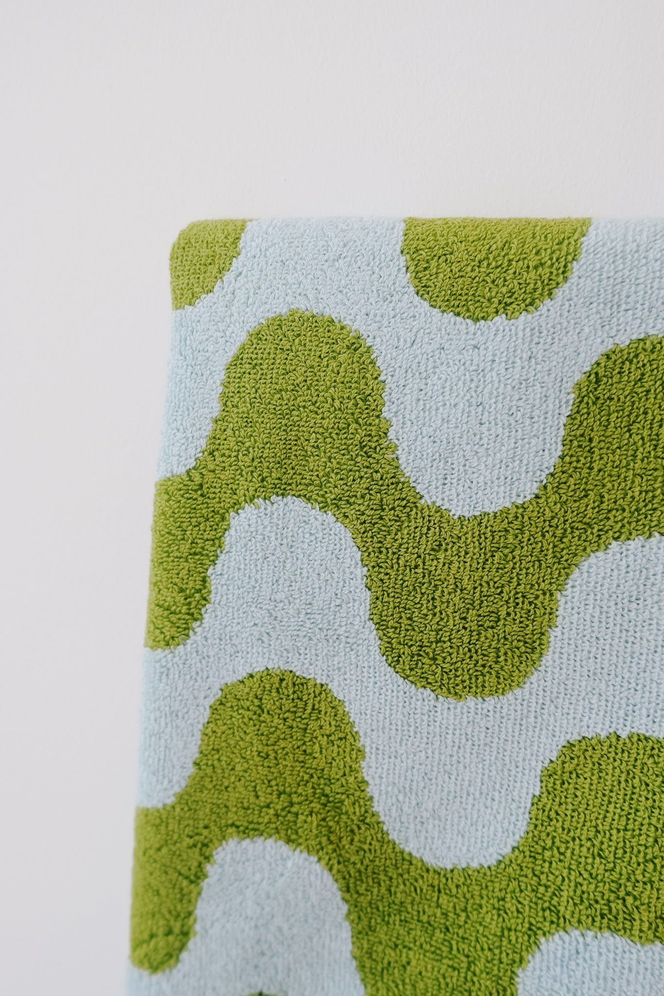 Hülle dich in dieses fröhliche, grün-blaue Hand- oder Badetuch – eine perfekte Mischung aus Farbe und Muster, die dein Badezimmer im Handumdrehen aufwertet. Es besteht aus 100 % Bio-Baumwolle, ist weich, saugfähig und besonders langlebig. Erhältlich als Hand- oder Badetuch, jeweils mit praktischer Aufhängeschlaufe, wurde es in Barcelona mit viel Liebe zum Detail entworfen.