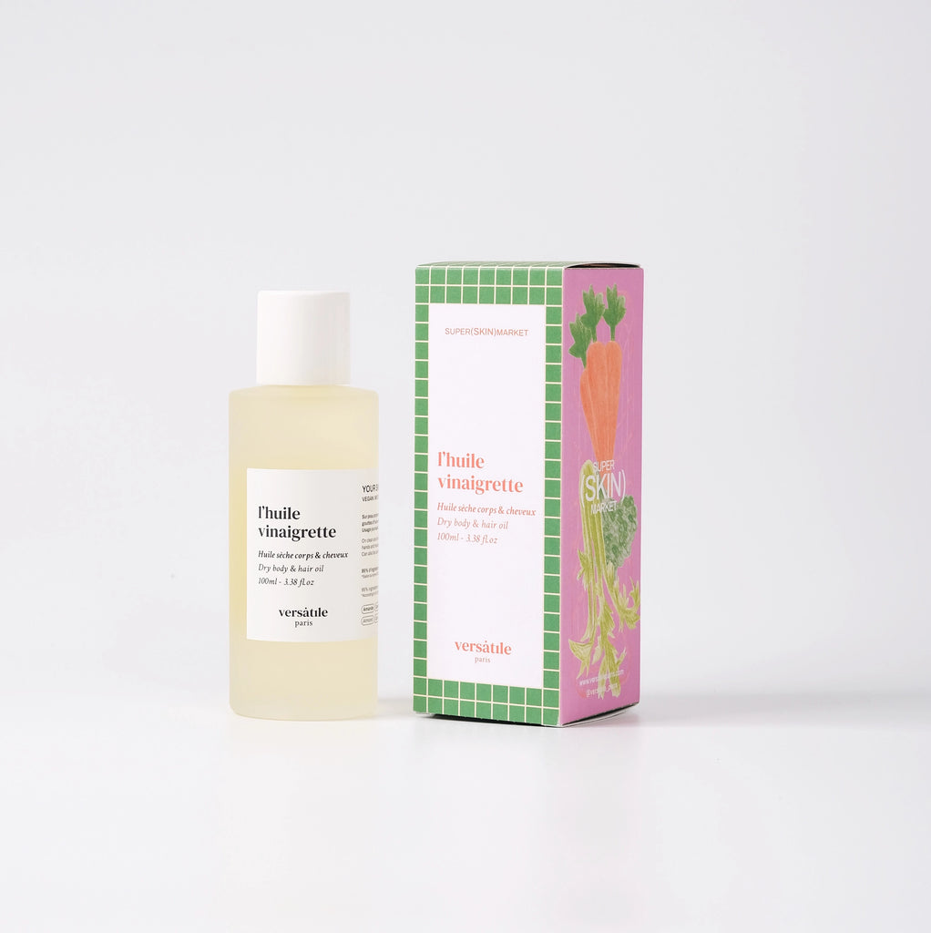 This dry oil is your new all-in-one beauty secret—perfect for body, face, and hair! Packed with natural goodness from carrot, celery, watercress, fennel, and thyme, it nourishes and rejuvenates while leaving a sunny, soft amber and orange scent with a warm touch. With 95% natural ingredients, it’s vegan, effective, and crafted in France. Dive into a fragrant, lightweight ritual that playfully pampers every inch of you.