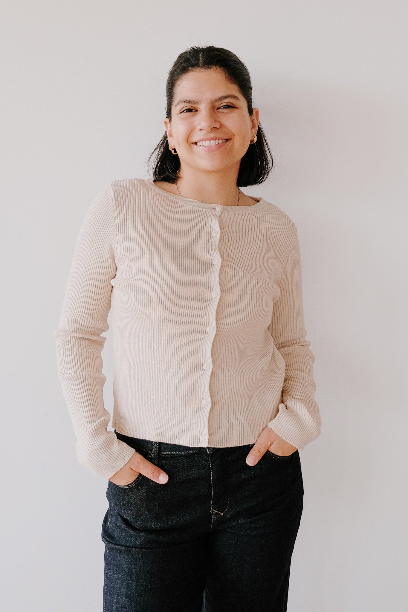 Strickjacke mit Rundhalsausschnitt – Glimt – Beige