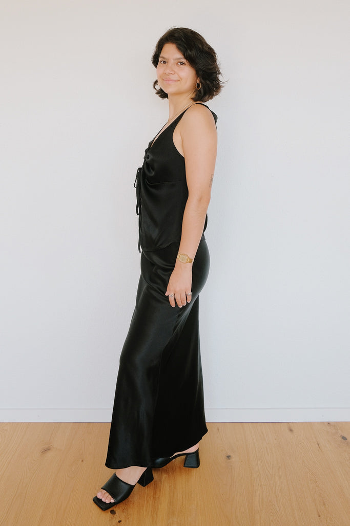 Erlebe mühelose Eleganz mit dem Serin Maxirock. Dieser knöchellange, leicht ausgestellte Rock fällt dank seiner seidigen, veganen Stoffmischung aus 95 % ENKA®-Viskose und 5 % Circulose® sanft. Perfekt für Hochzeiten, Tänze oder jedes Abenteuer – Serin passt sich Deinem Stil an – trage ihn auf der Hüfte für einen entspannten Look oder eine Nummer kleiner für eine schicke Passform auf der Taille. Geniesse das Leben mit einem Rock, der sich mit Dir bewegt und das Anziehen zum Kinderspiel macht.