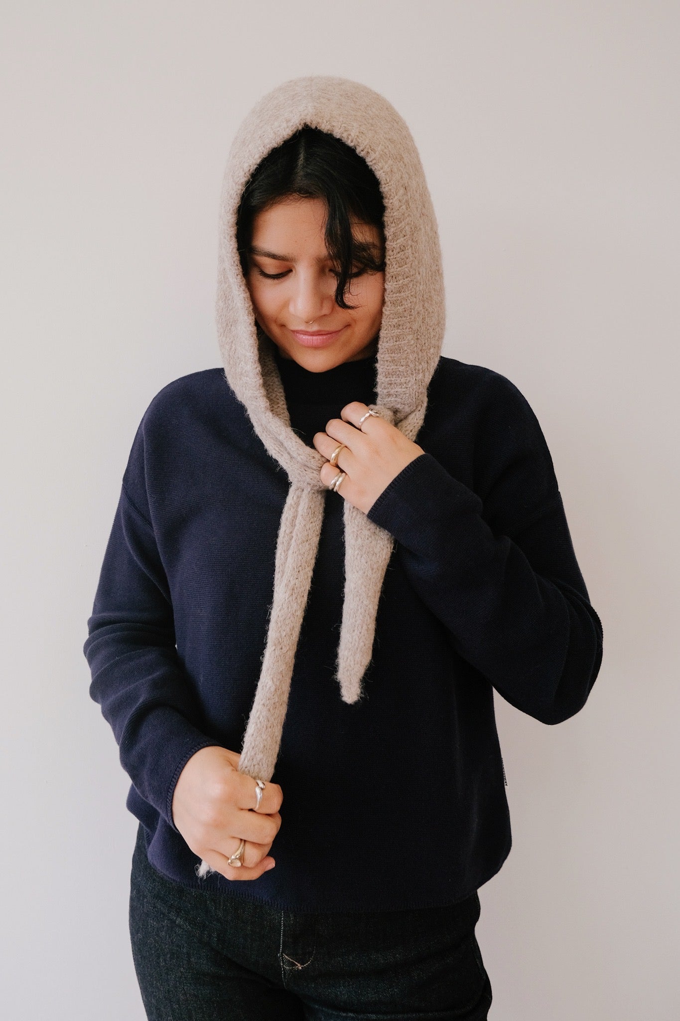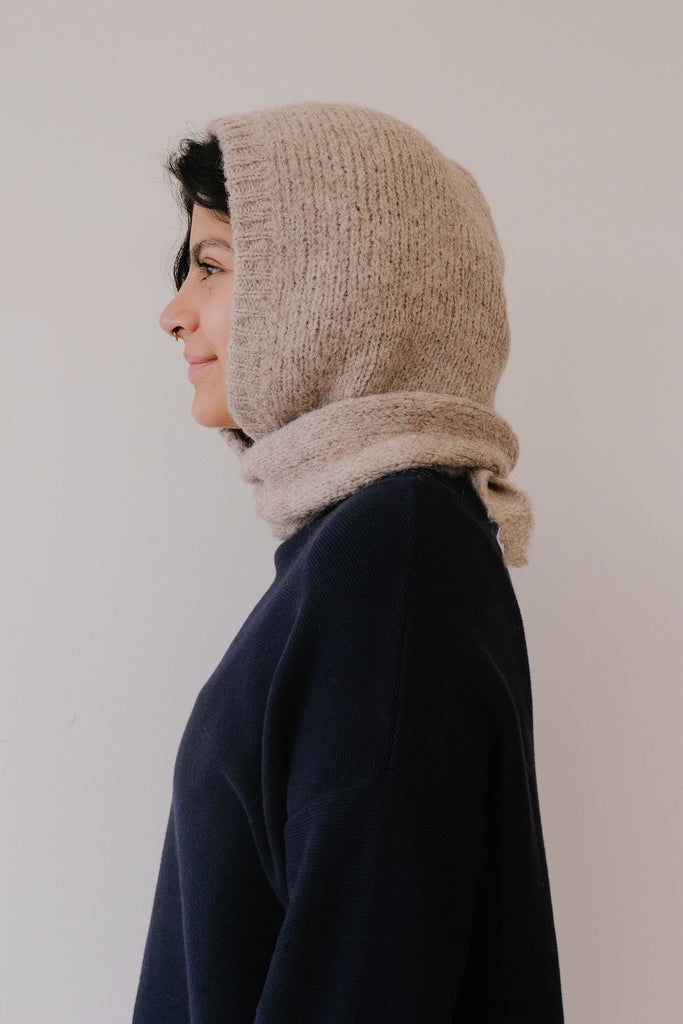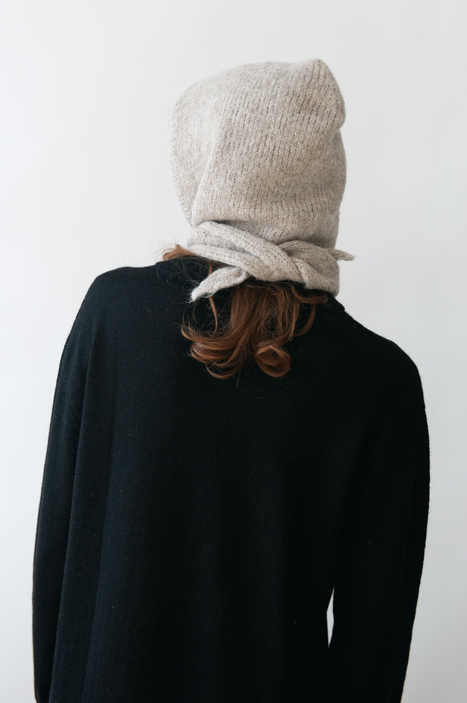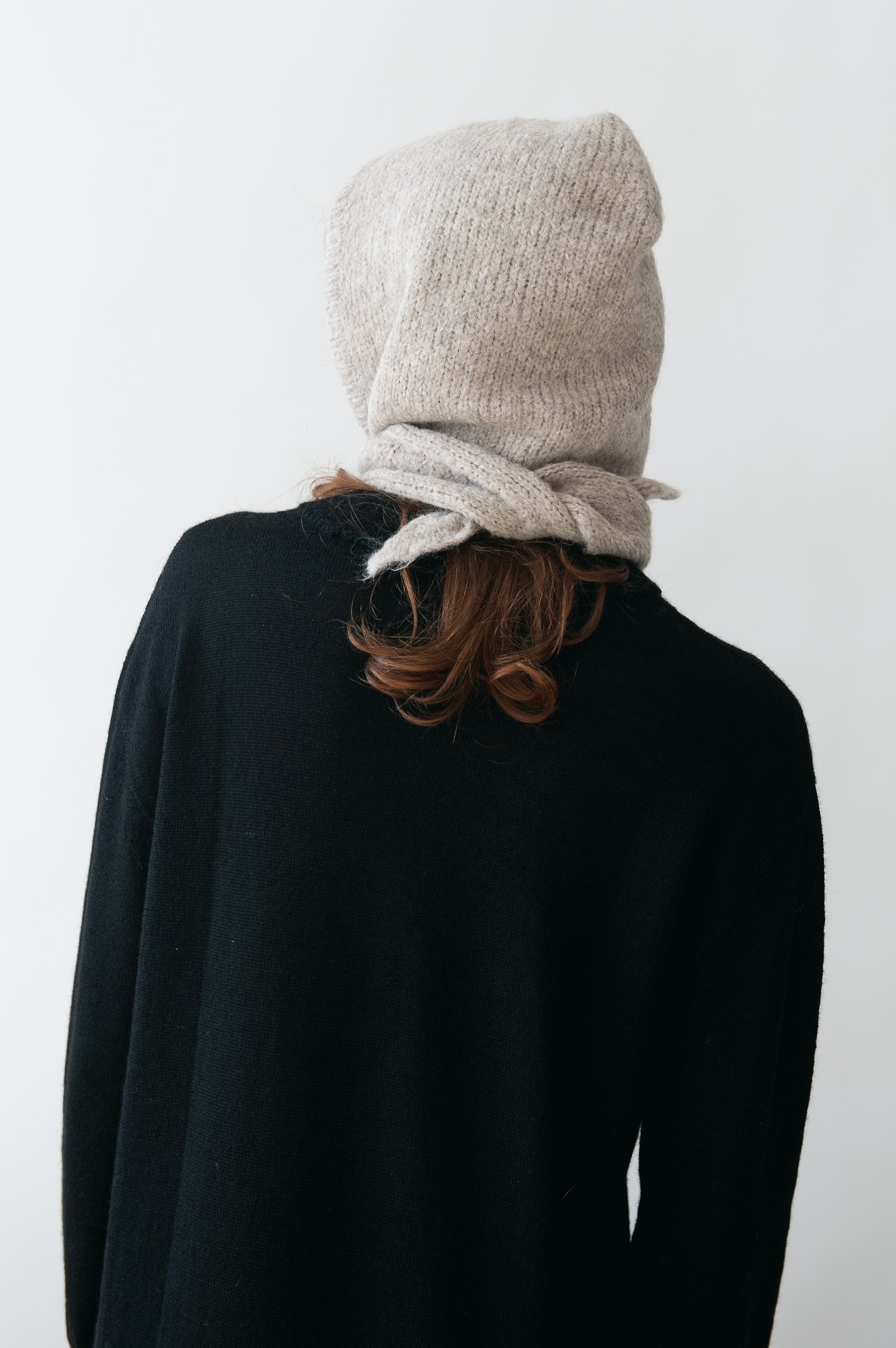 Wrap yourself in cozy luxury with this scarf, crafted from the finest alpaca wool. Its relaxed fit and clever design combine a hood and scarf, adapting effortlessly to any head shape or hairstyle. Perfect for chilly days when you want both warmth and style with a playful twist.