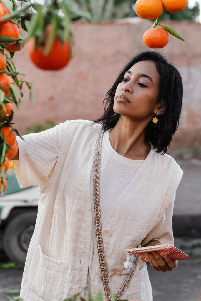 Jedes Band besteht aus 100 % Naturfasern und wird mit Präzision auf einem komplexen Webstuhl gewebt. Anschließend wird es von unserer Frauenvereinigung in Marrakesch sorgfältig vernäht. Das Band ist extrem robust und langlebig und sorgt für die Sicherheit Ihres Telefons.