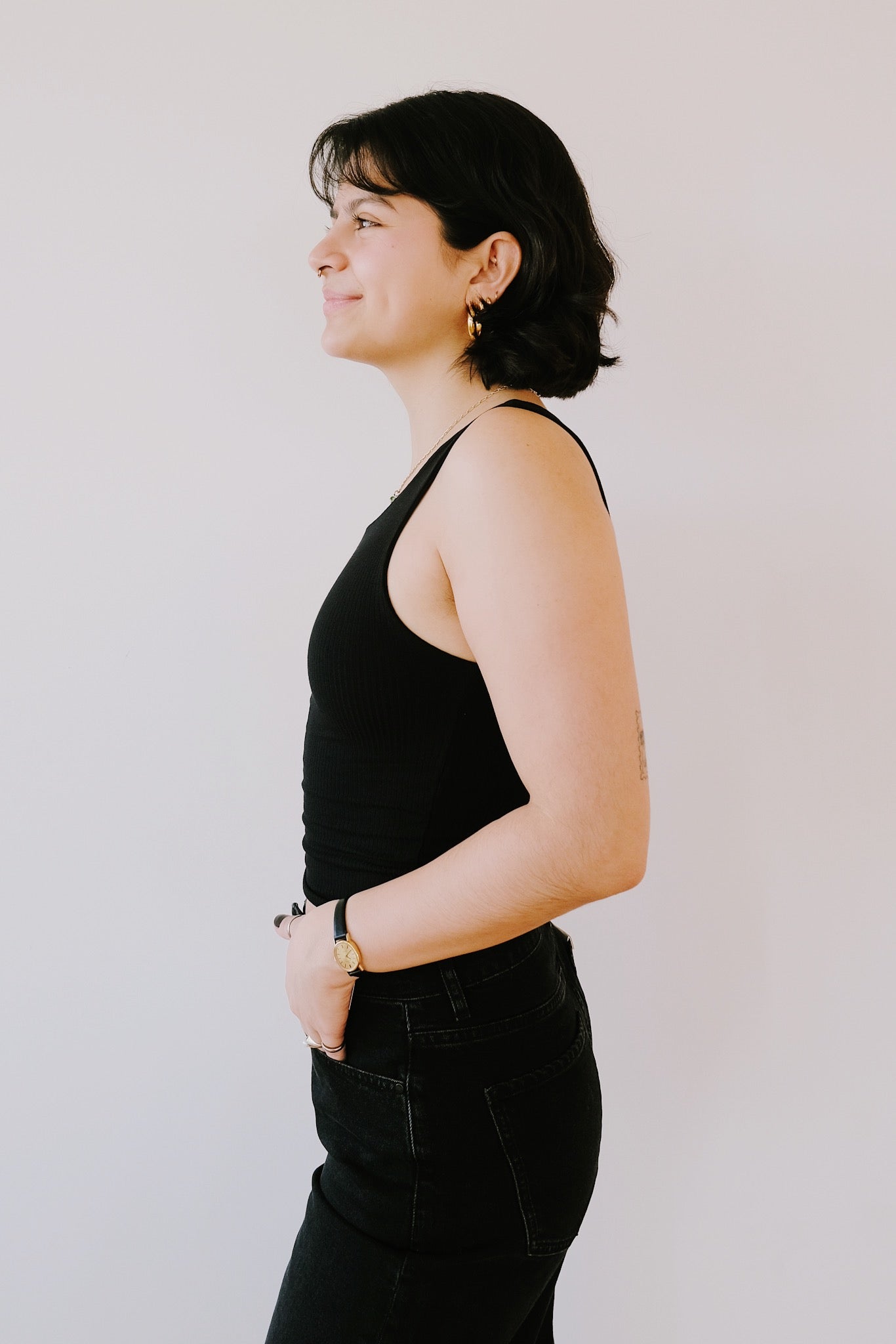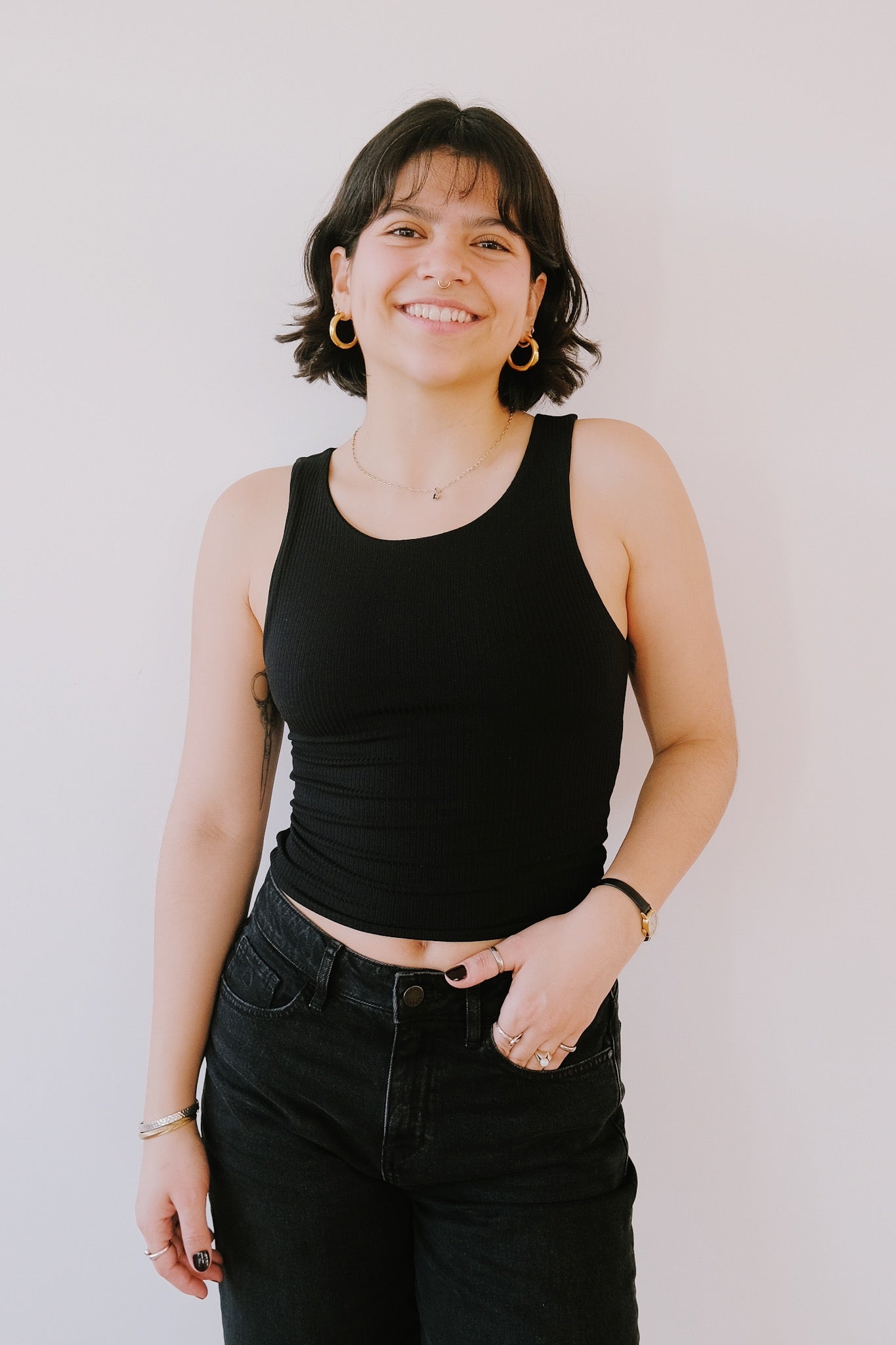 Dies ist das Must-Have-Crop-Top. Es hat einen hohen Rundhalsausschnitt. Der gerippte Stoff ist superweich und sehr elastisch. Egal ob kleine oder größere Oberweite, dieses Top passt sich sehr gut an. Nach mehrmaligem Waschen franst der Zick-Zack-Saum etwas aus, was den Look noch cooler macht.