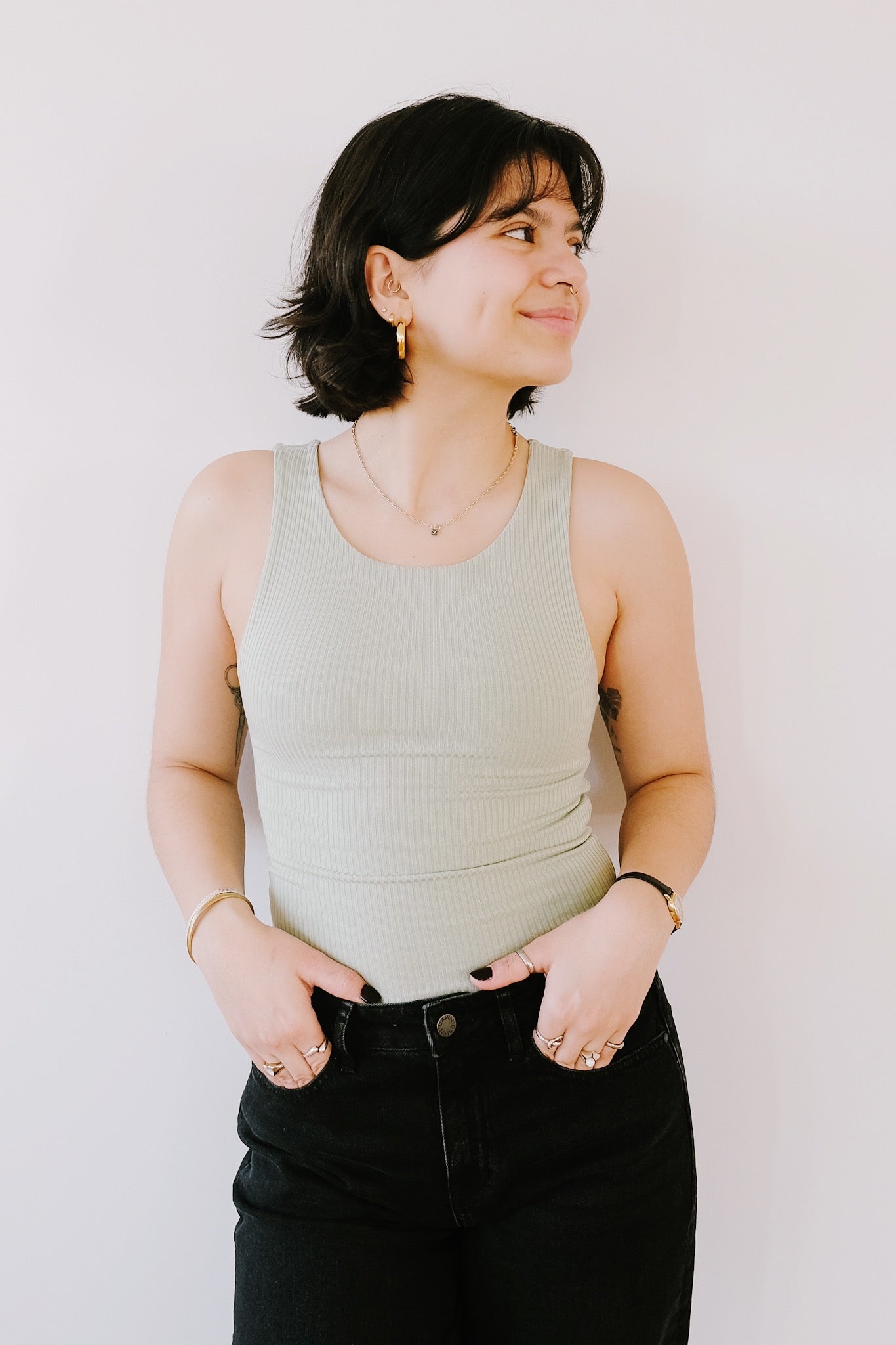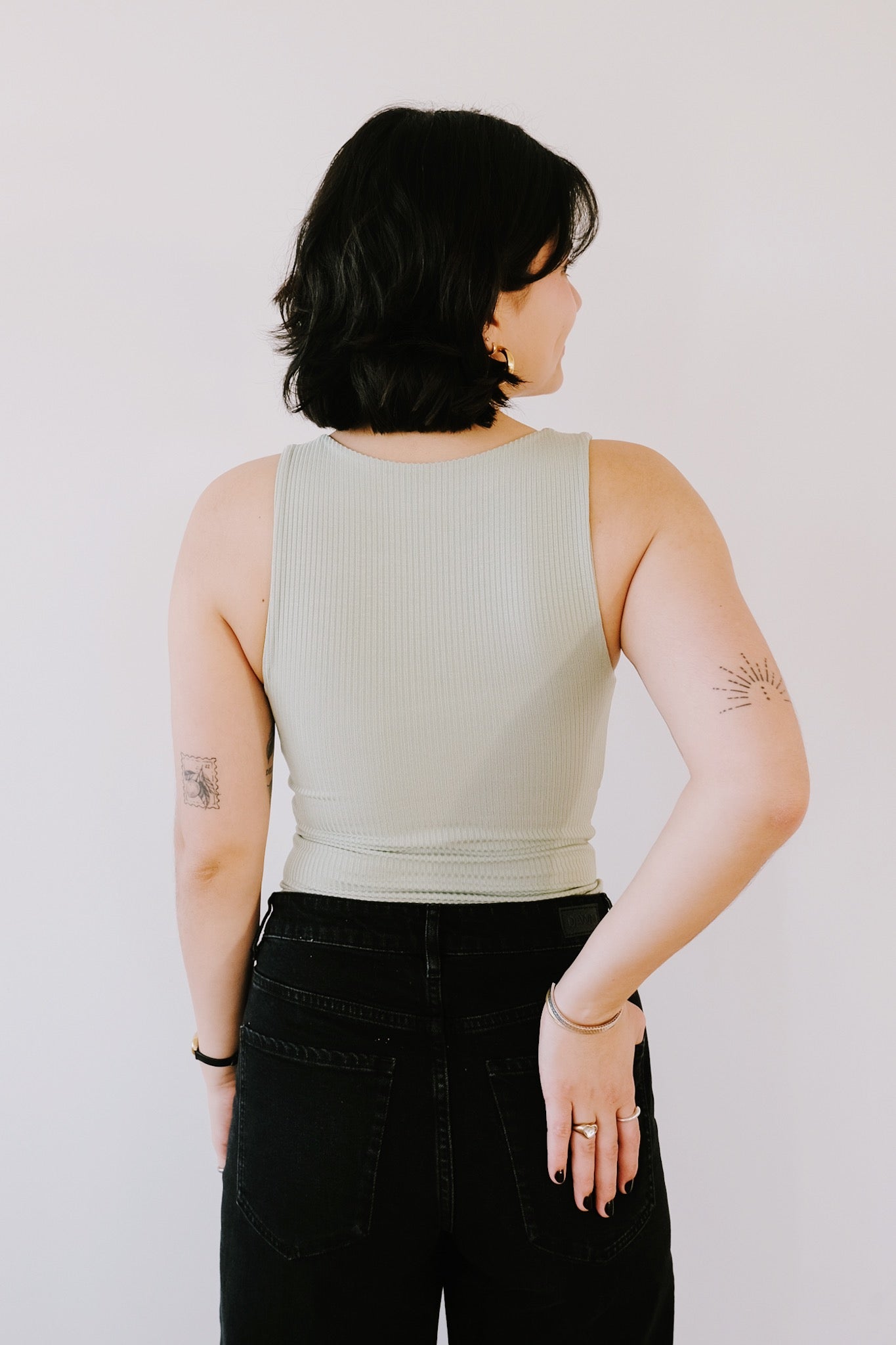 Dies ist das Must-Have-Crop-Top. Es hat einen hohen Rundhalsausschnitt. Der gerippte Stoff ist superweich und sehr elastisch. Egal ob kleine oder größere Oberweite, dieses Top passt sich sehr gut an. Nach mehrmaligem Waschen franst der Zick-Zack-Saum etwas aus, was den Look noch cooler macht. Dieser sanfte Mintton ist eine limitierte Auflage.