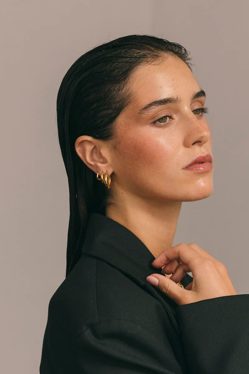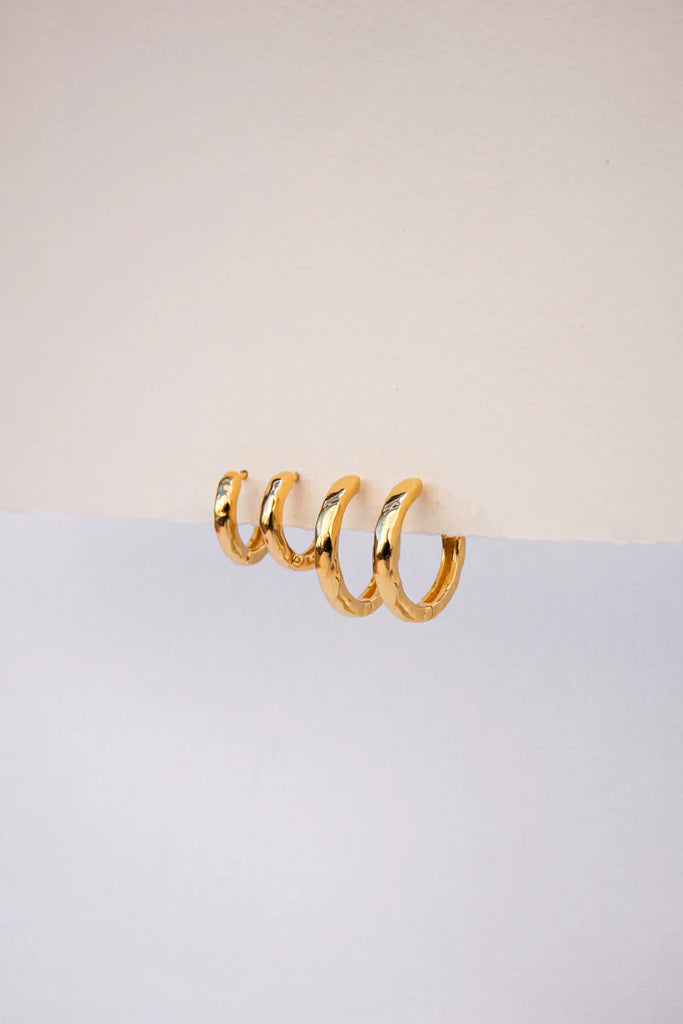 Verleihen Sie Ihrer Ohr-Party mit den gehämmerten Huggies einen Hauch von Struktur und Stil! Diese schlichten Creolen bestechen durch ihr einzigartiges gehämmertes Finish für einen edlen Look. Ihr Huggie-Design sorgt für einen bequemen Sitz und macht sie perfekt für den Alltag. Wählen Sie zwischen Gold und Silber und Ihrer bevorzugten Größe.