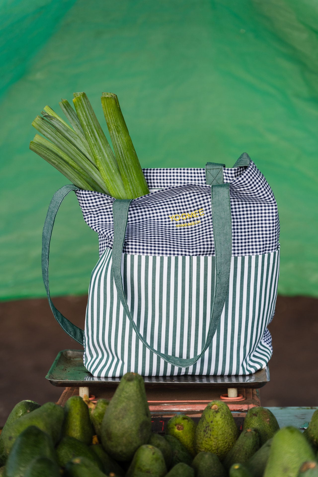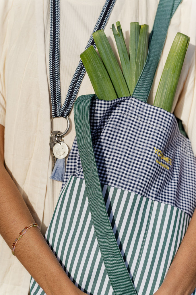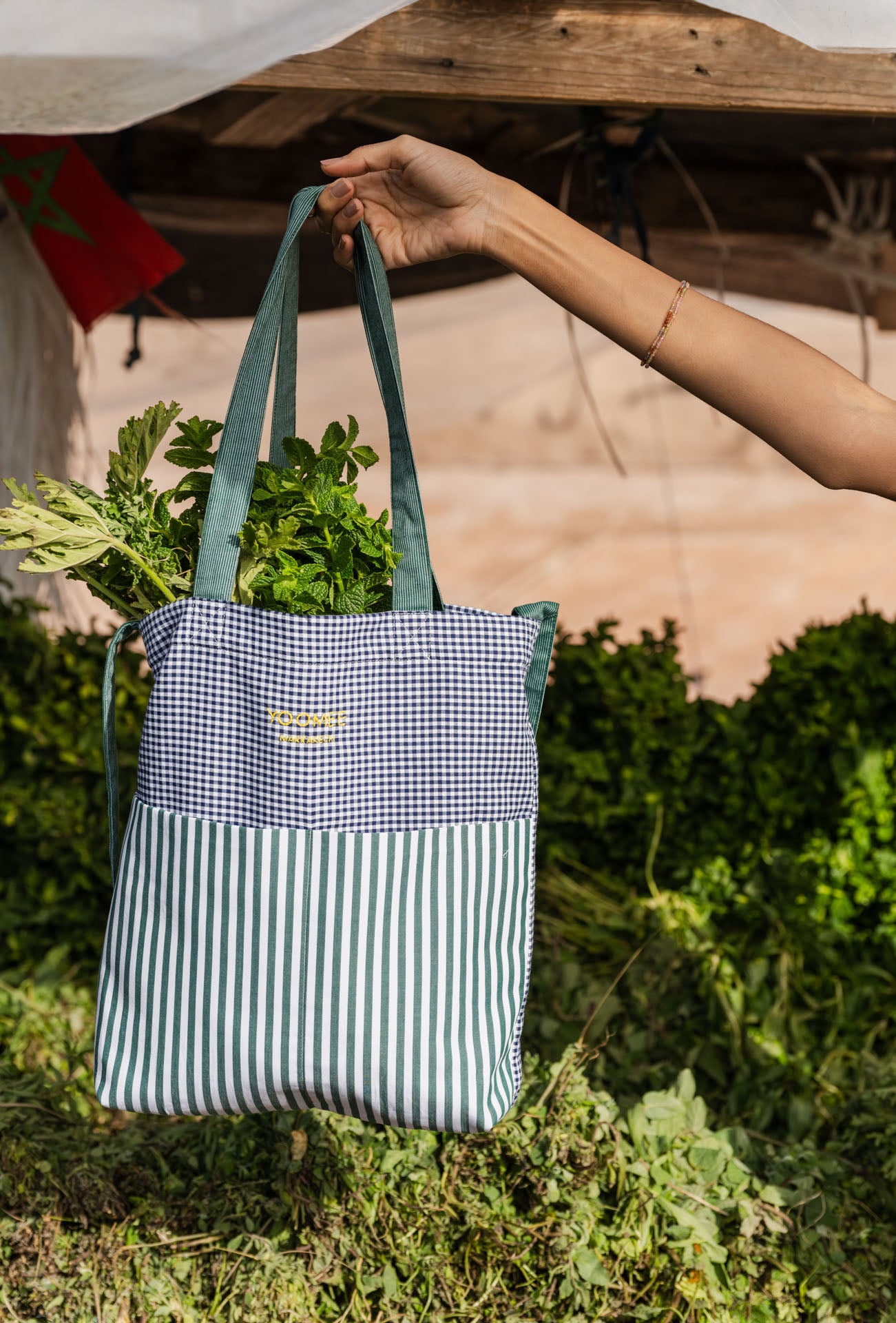 Diese farbenfrohe Tragetasche bietet die perfekte Größe für alle wichtigen Dinge des täglichen Bedarfs. Sie besteht aus einzigartigem Baumwollstoff und ist mit einem handgestickten Logo versehen. Sie hat zwei Außentaschen und eine Innentasche mit einer süßen kleinen Quaste am Reißverschluss.