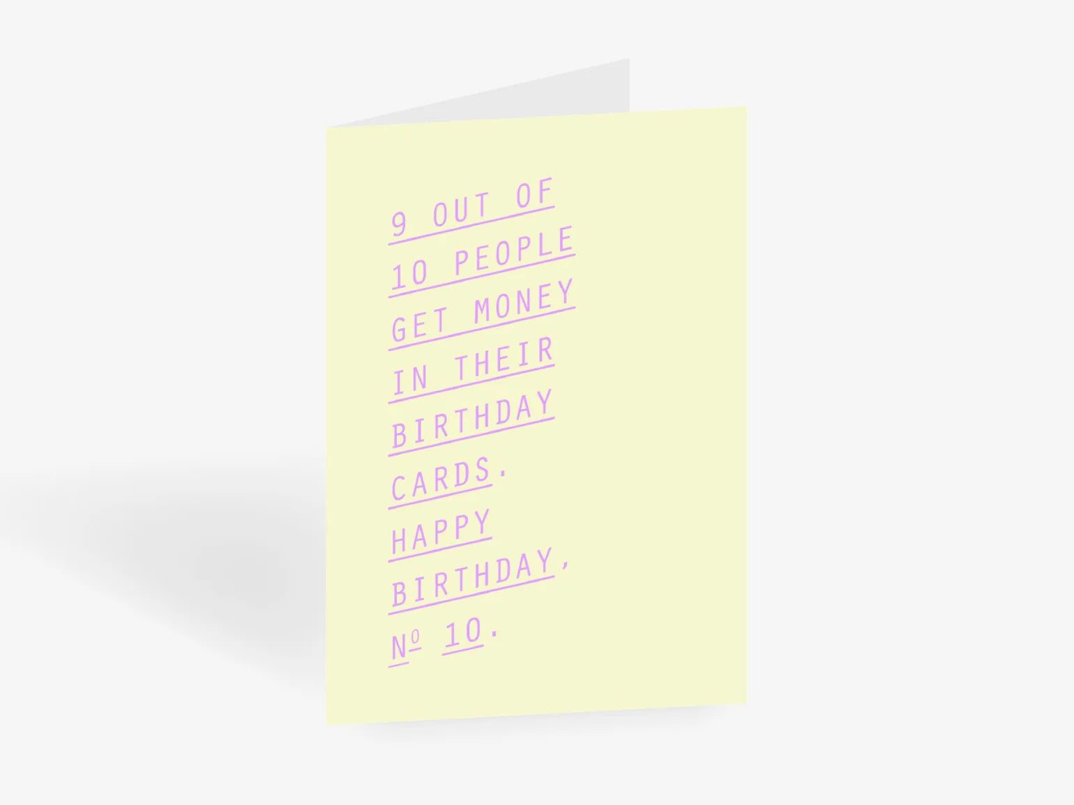 Dies ist eine lustige Karte für jedes Geburtstagskind. Keine Sorge, wenn Sie die 10. Person sind, bekommen Sie stattdessen trotzdem eine liebevolle Karte! Herzlichen Glückwunsch, Sie sind nicht wie die anderen.