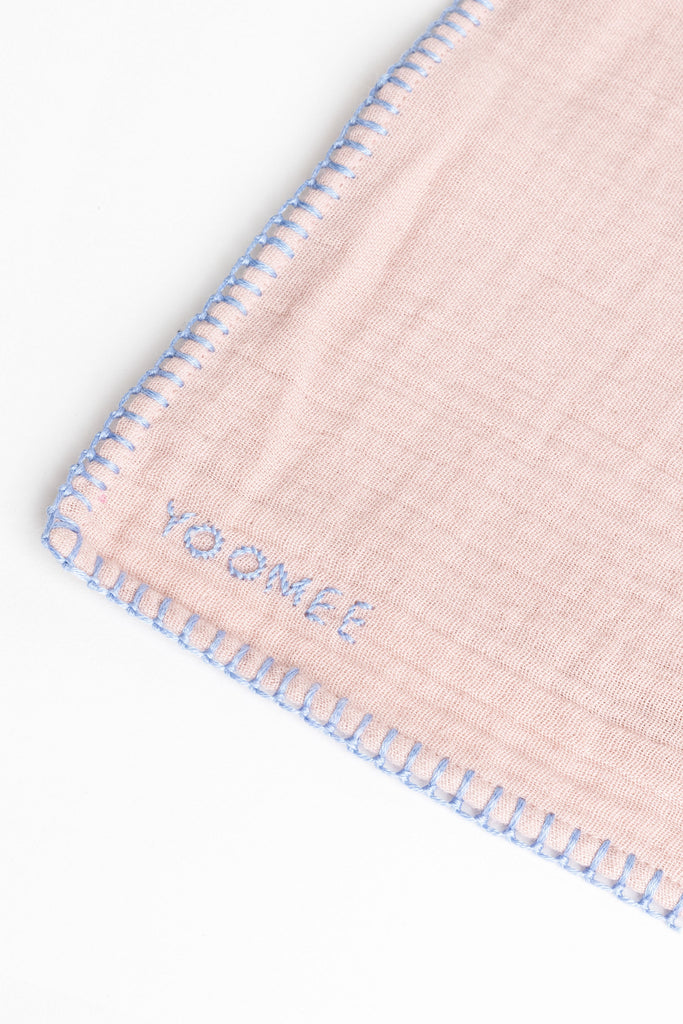 Jedes Stück wird sorgfältig mit der traditionellen marokkanischen „Hbik“-Technik rundherum von Hand bestickt. Allein die Fertigstellung dauert etwa zwei Stunden handwerklicher Arbeit, die von YOOMEE's geliebter AZIZA liebevoll ausgeführt wird. Sie haben das Foulard nach ihr benannt – AZIZA, was so viel bedeutet wie die Geliebte .