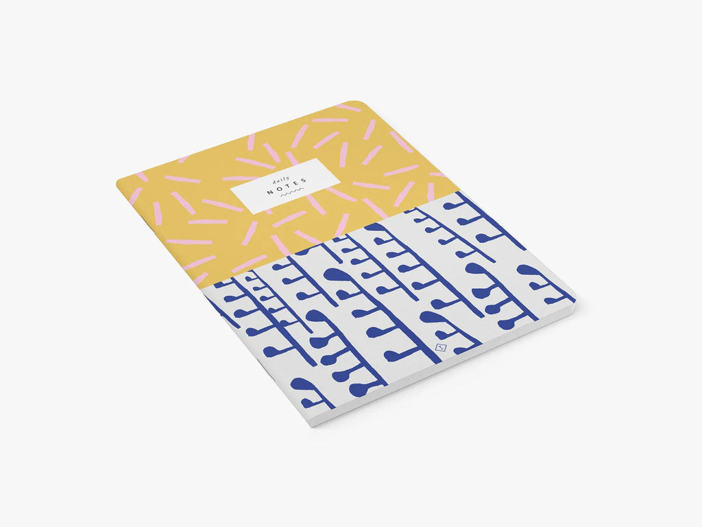 Halten Sie Ihre Gedanken und Pläne stilvoll in diesem lustigen Notizbuch in Gelb und Blau fest. Es verfügt über eine flexible Bindung und einen stabilen Einband aus Naturpapier und bietet leere cremefarbene Seiten für endlose Möglichkeiten. Außerdem ist es klimaneutral!