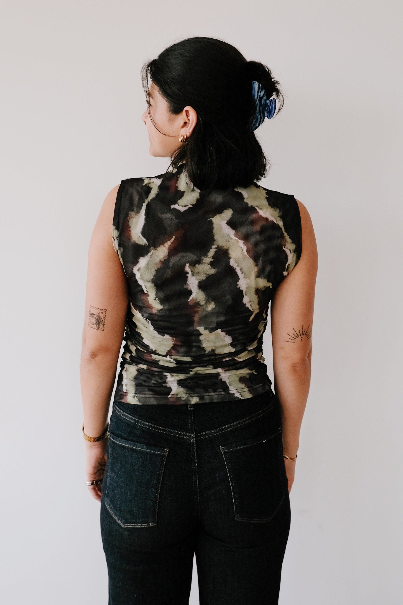 Mit dem frechen Rüschentop Laguna im lebendigen Print ziehst du alle Blicke auf dich. Mit seinem verspielten Ausschnitt und dem doppellagigen Netz verleiht dieses Top deinem Look genau die richtige Portion Dramatik. Hergestellt aus recycelten Plastikflaschen ist es nicht nur ein modisches Statement, sondern auch eine umweltfreundliche Wahl. Falle auf und bleib dabei nachhaltig.